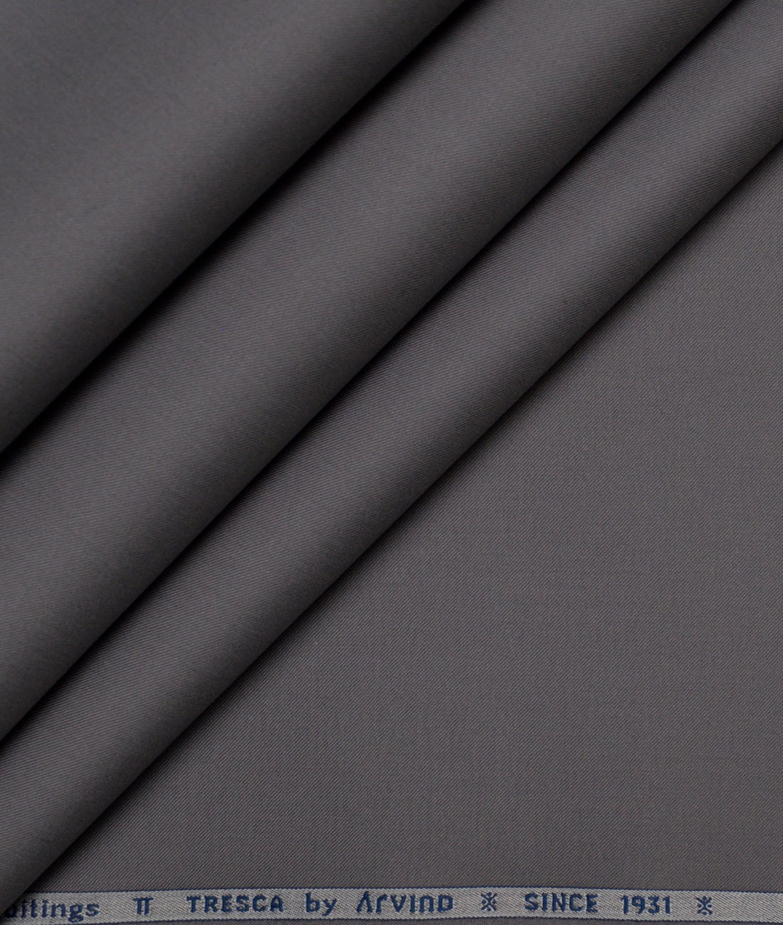 Arvind Tresca Solids Wrinkle Resistant Premium Cotton Stretchable Trouser or Chinos Fabric (Grey)