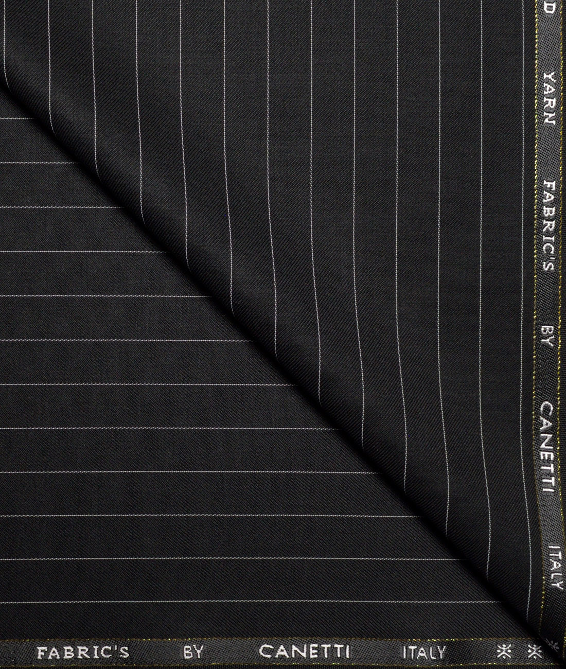 Canetti Italy Striped Terry Rayon Unstitched Suiting Fabric (Black)
