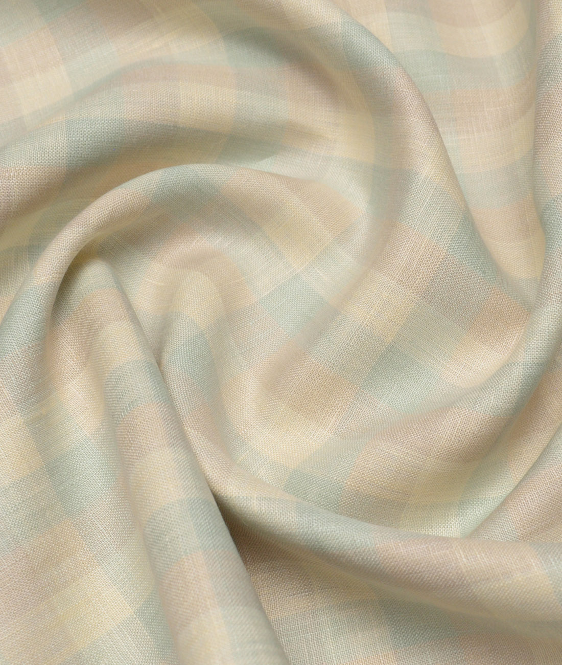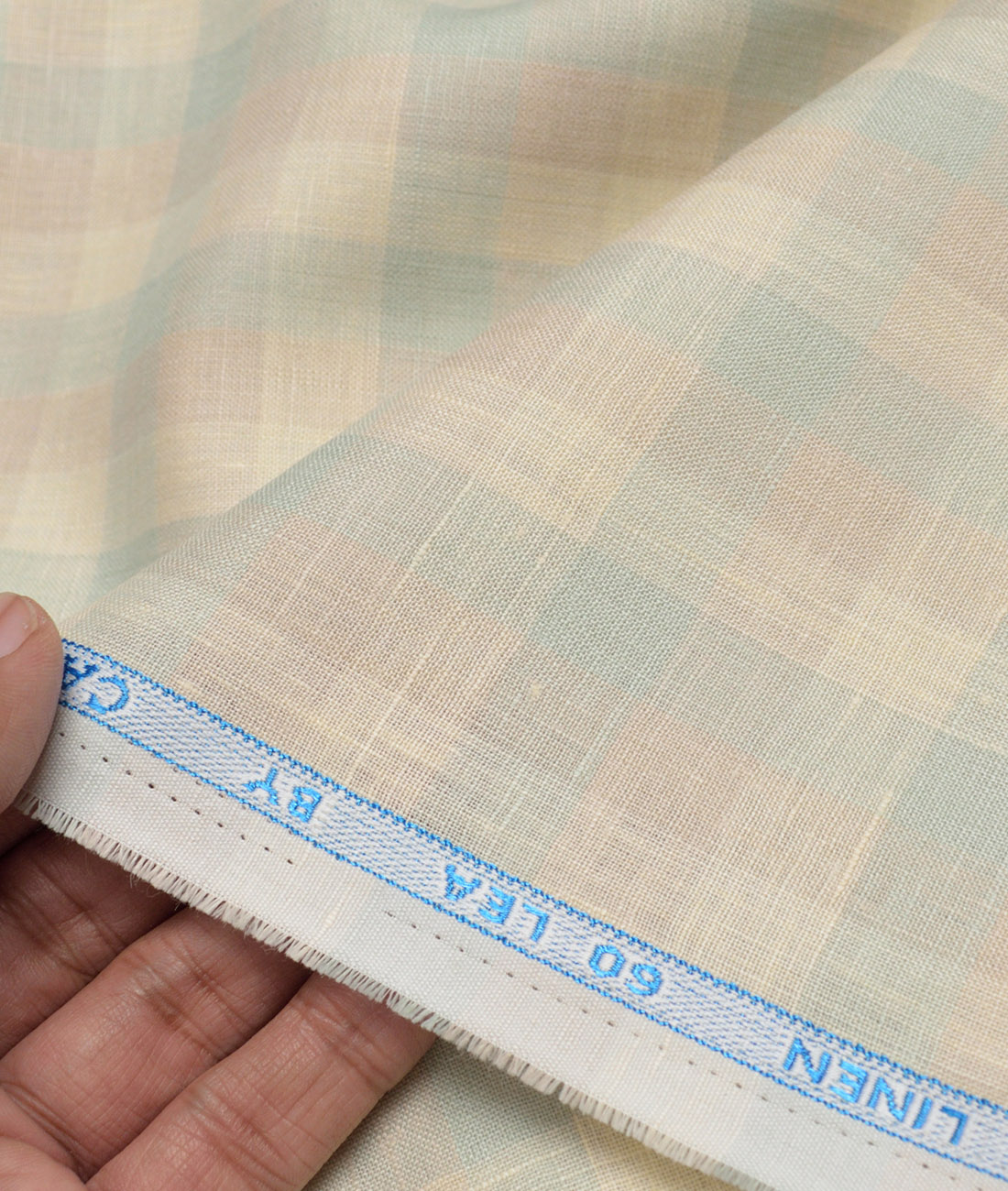Cavalero Italy 60 LEA Premium Linen Checks Shirting Fabric (Cream & Green)