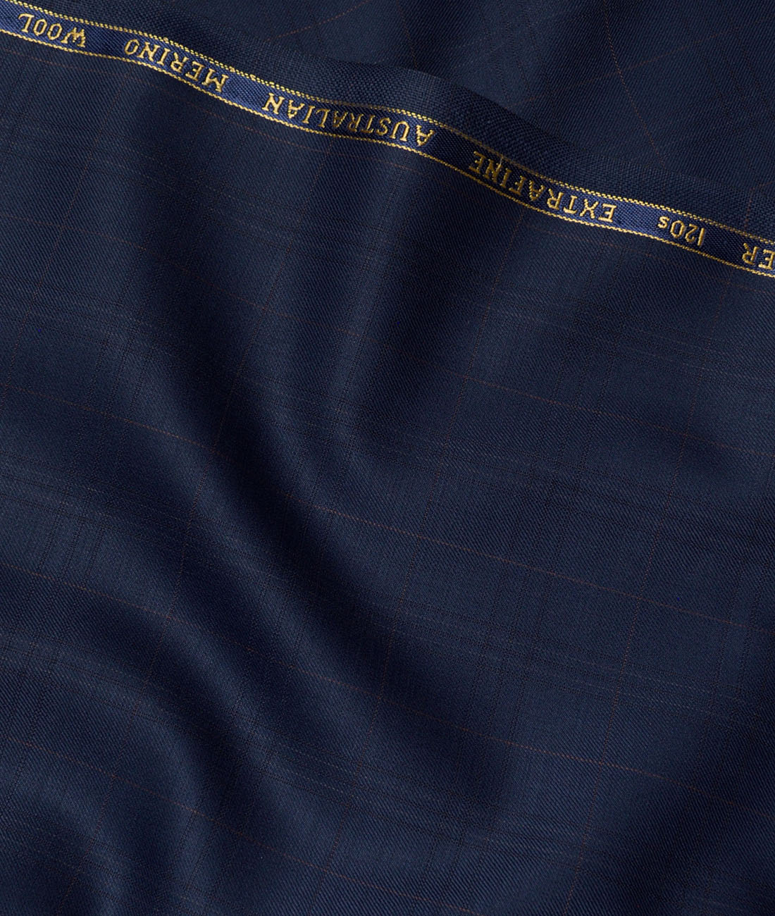 Cavalero Italy Super 120’s Checks 52% Merino Wool Suiting Fabric (Dark Royal Blue)