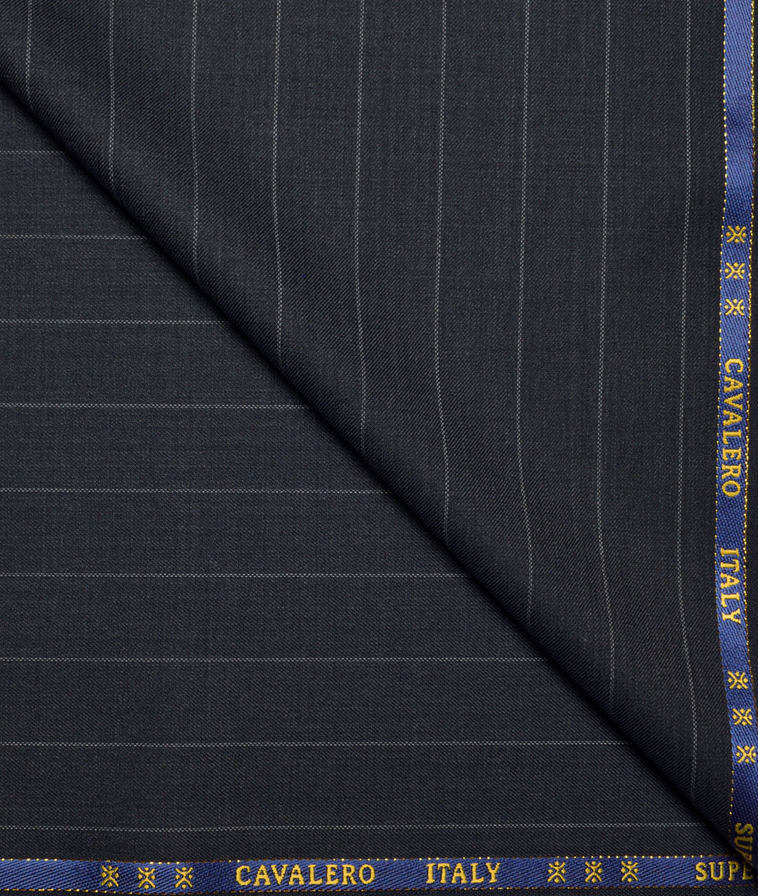 Cavalero Italy Super 120’s Striped 60% Merino Wool Suiting Fabric (Dark Greyish Blue)