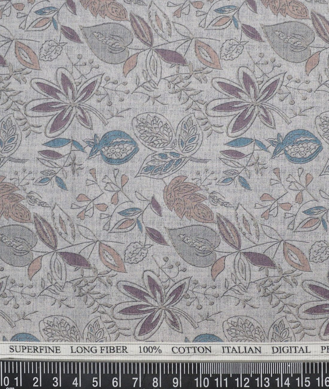 Cavalero Italy Superfine Cotton Printed Shirting Fabric (Light Grey)