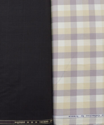 Combo of Unstitched Soktas Pink Cotton Shirt Fabric and J.Hampstead Umber Brown Polyester Viscose Trouser Fabric