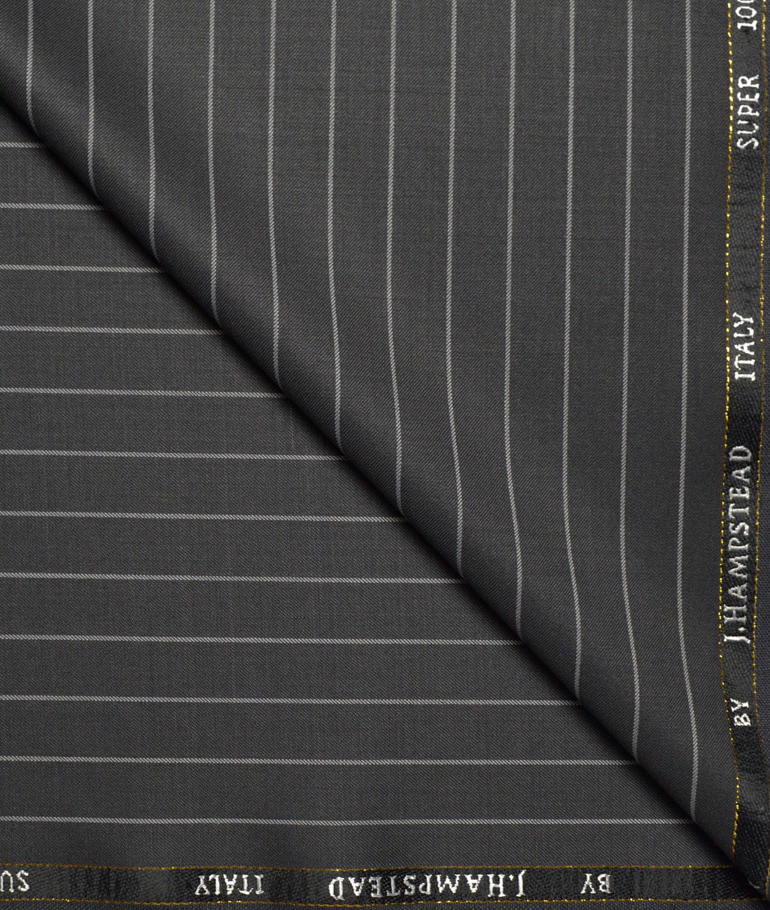 J.Hampstead Super 100’s Striped 20% Merino Wool Suiting Fabric (Dark Grey)
