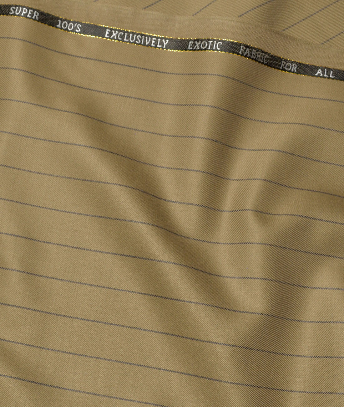 J.Hampstead Super 100’s Striped 20% Merino Wool Suiting Fabric (Khakhi)