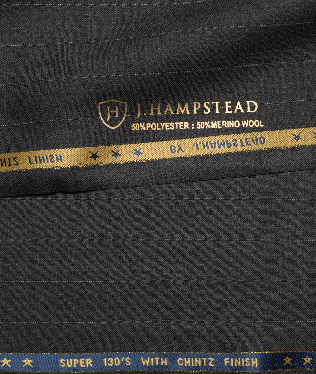 J.Hampstead Super 130’s Striped 50% Merino Wool Suiting Fabric (Dark Grey)