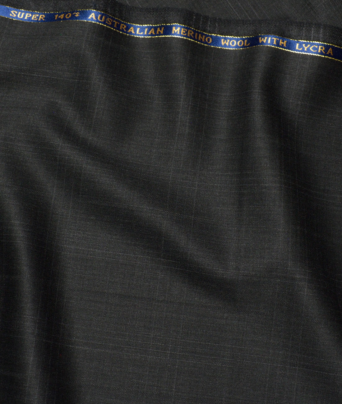 J.Hampstead Super 140’s Checks 58% Merino Wool Stretchable Suiting Fabric (Blackish Grey)