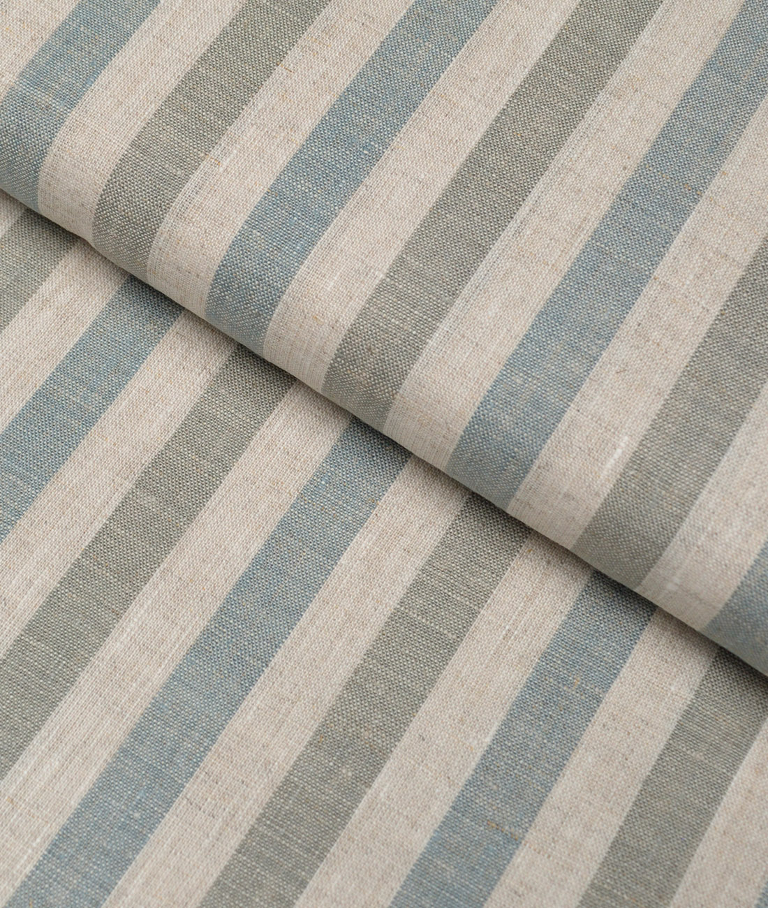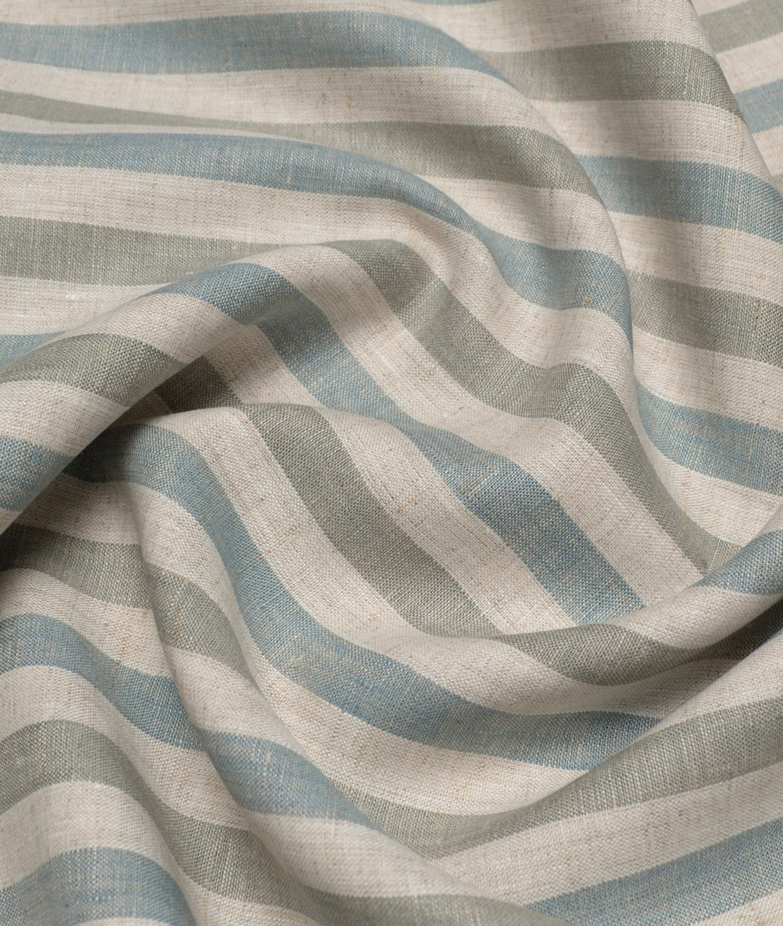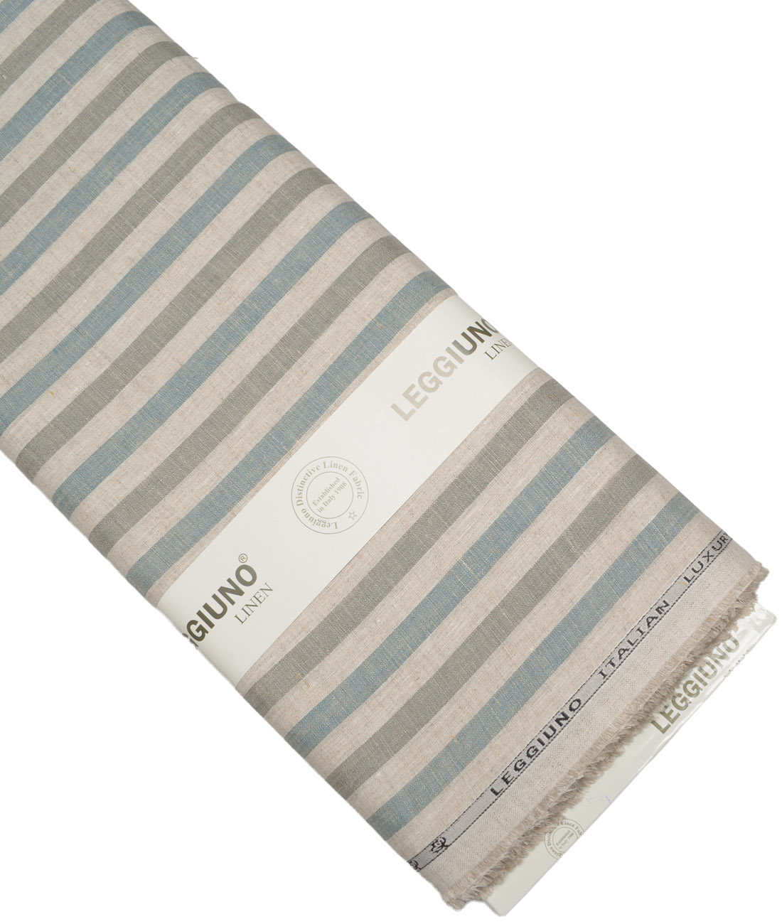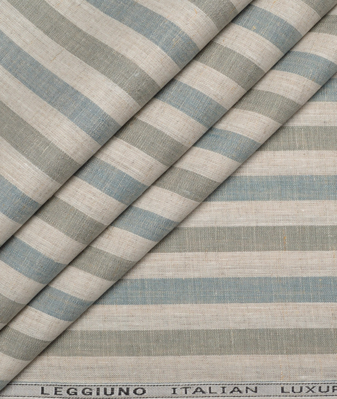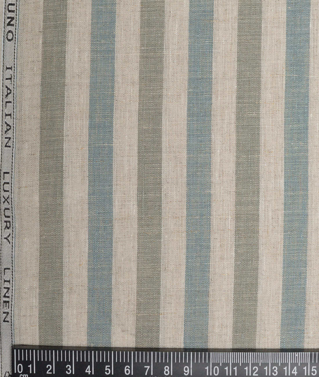 Leggiuno italy 60 LEA Italian Linen Striped Shirting Fabric (Natural Beige & Green)