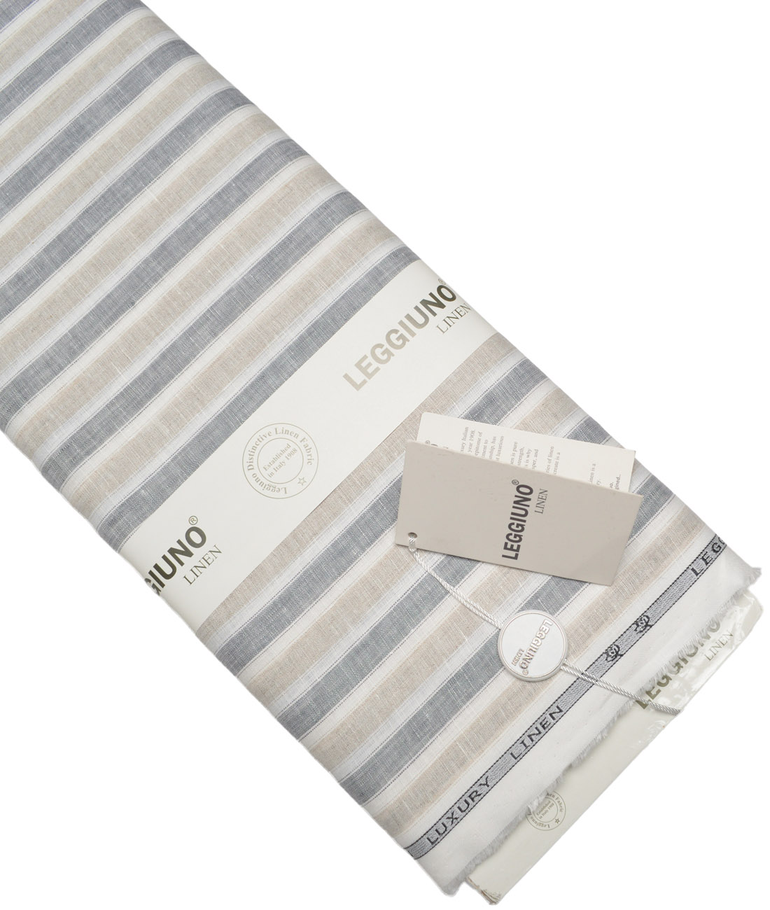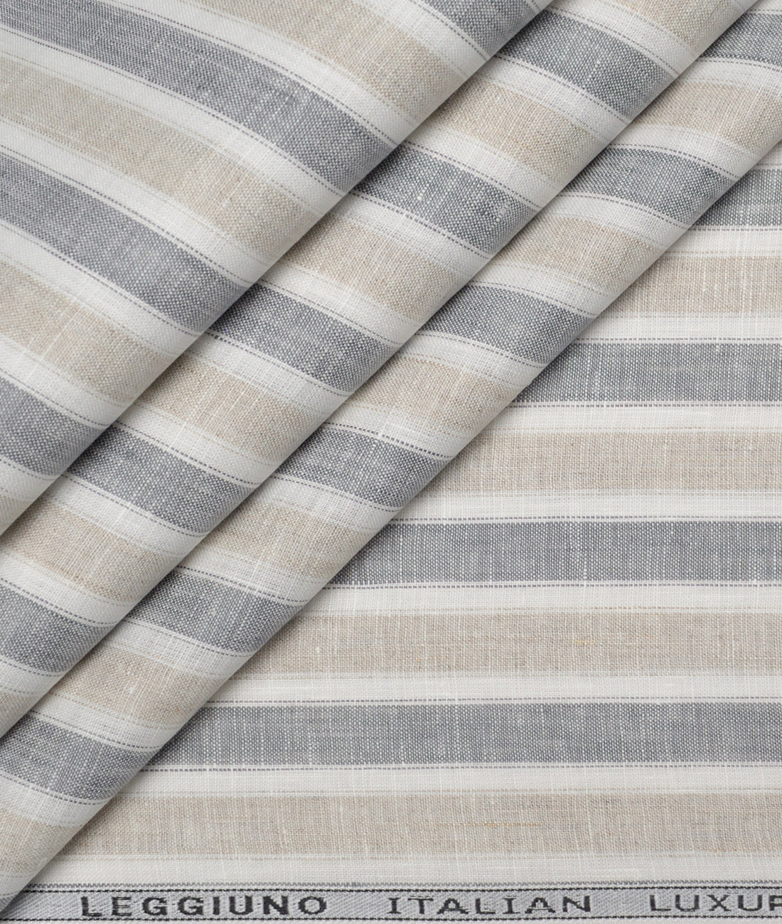 Leggiuno italy 60 LEA Italian Linen Striped Shirting Fabric (Natural Beige & Grey)