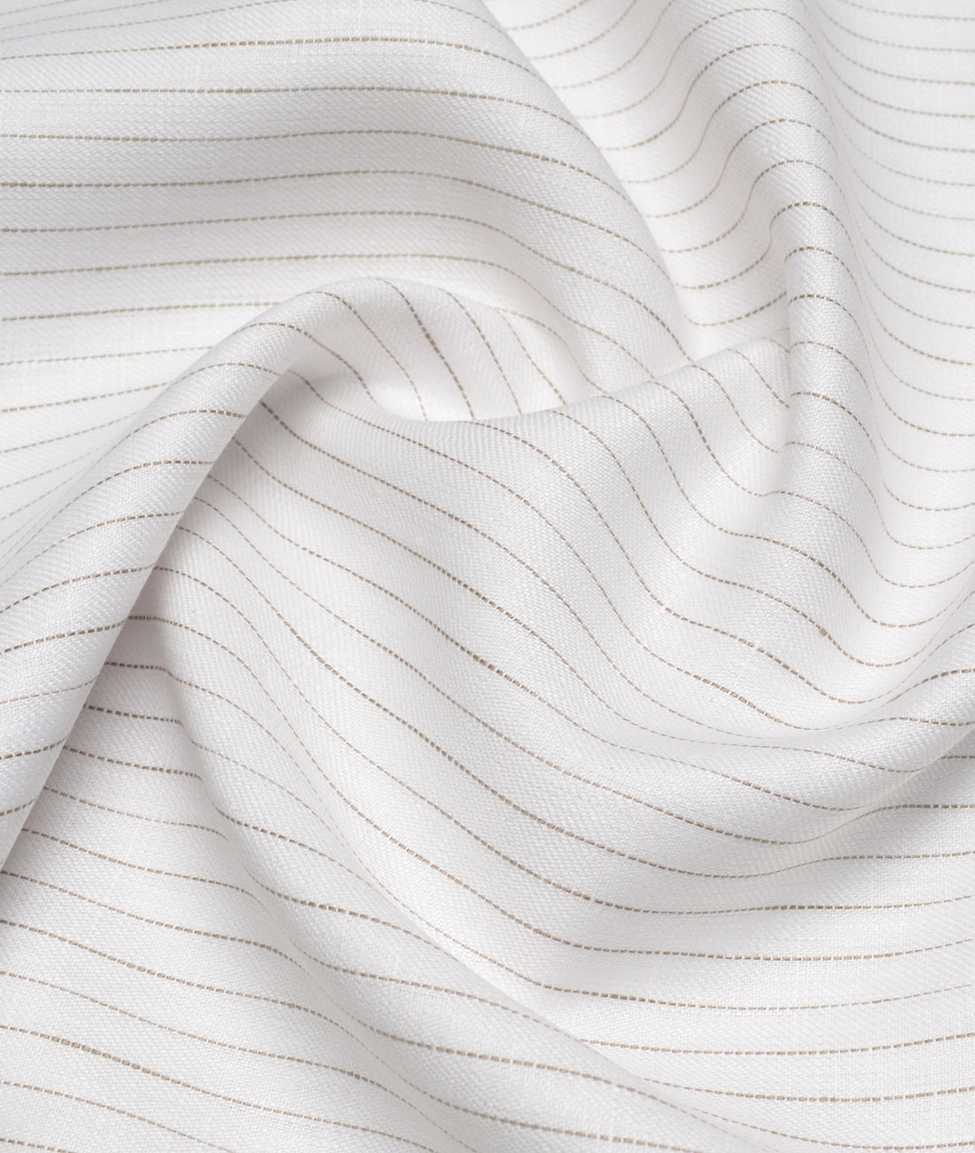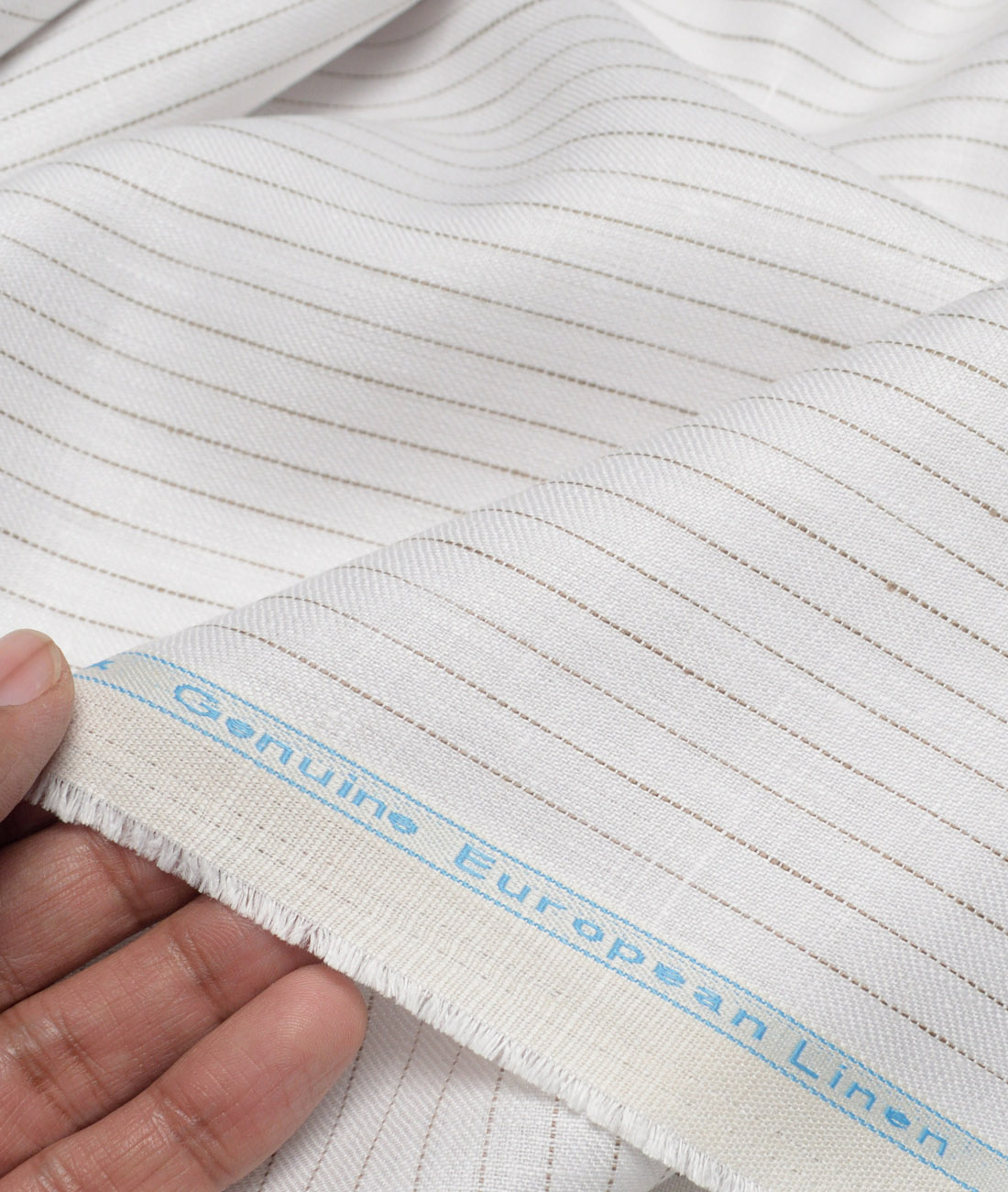 Linen Club 40 LEA Striped 100% Linen Suiting Fabric (White)