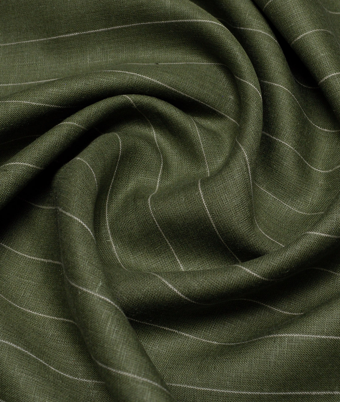 Linen Club 60 LEA European Linen Striped Shirting Fabric (Dark Green)