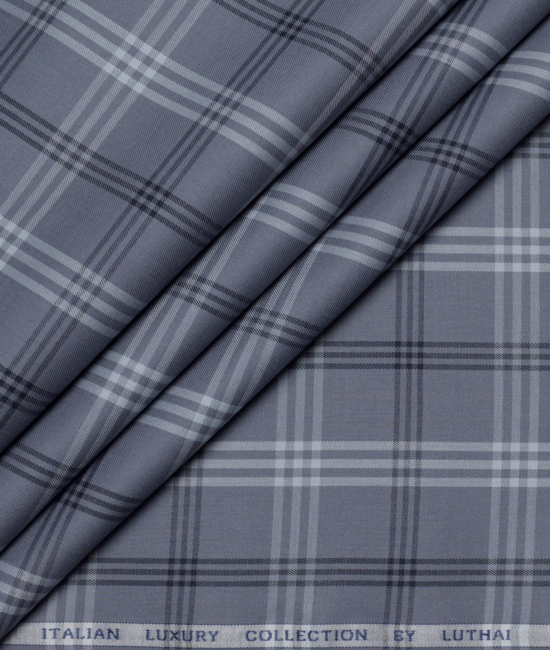 Luthai Giza Cotton Checks Shirting Fabric (Grey)