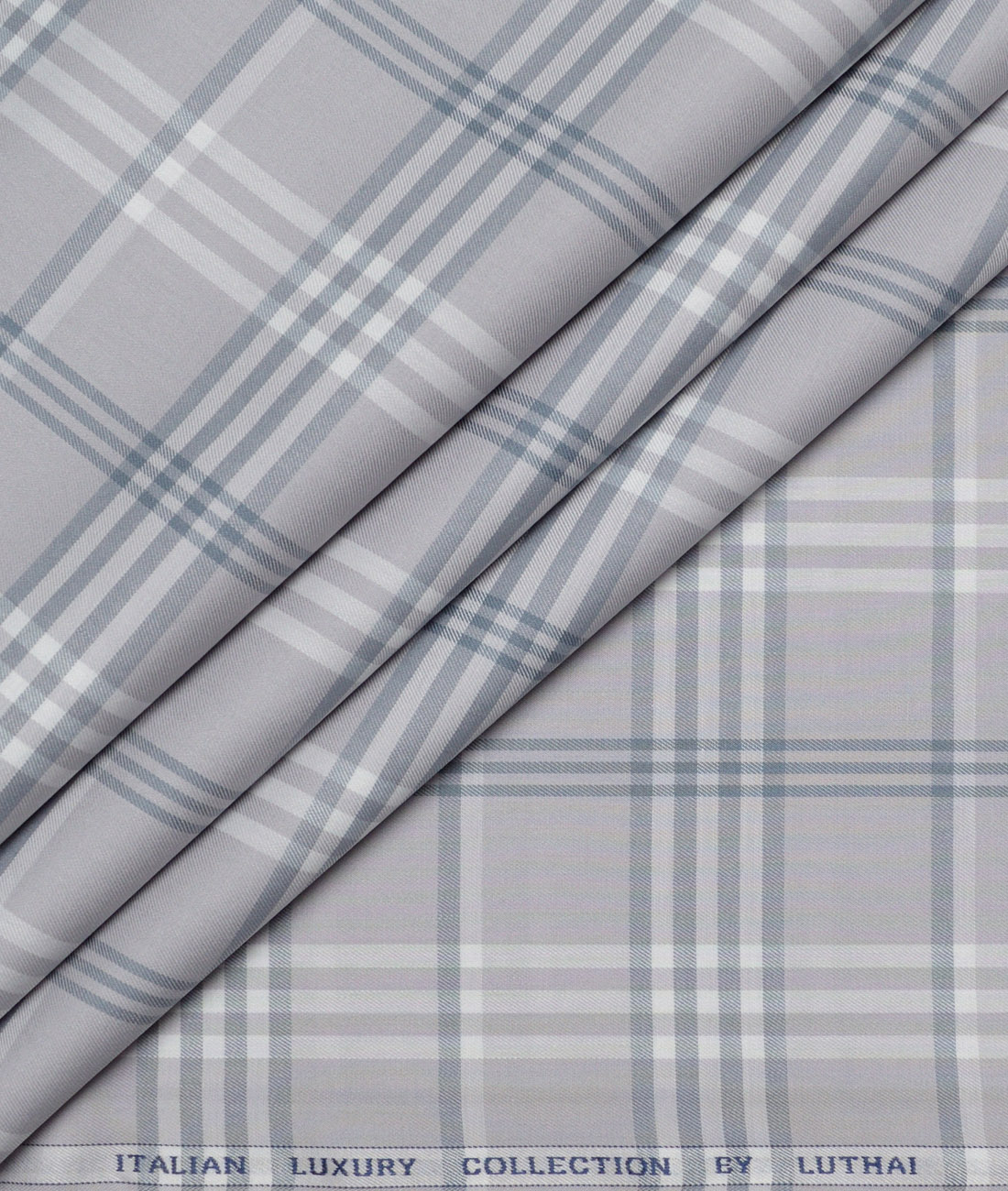 Luthai Giza Cotton Checks Shirting Fabric (Light Grey)
