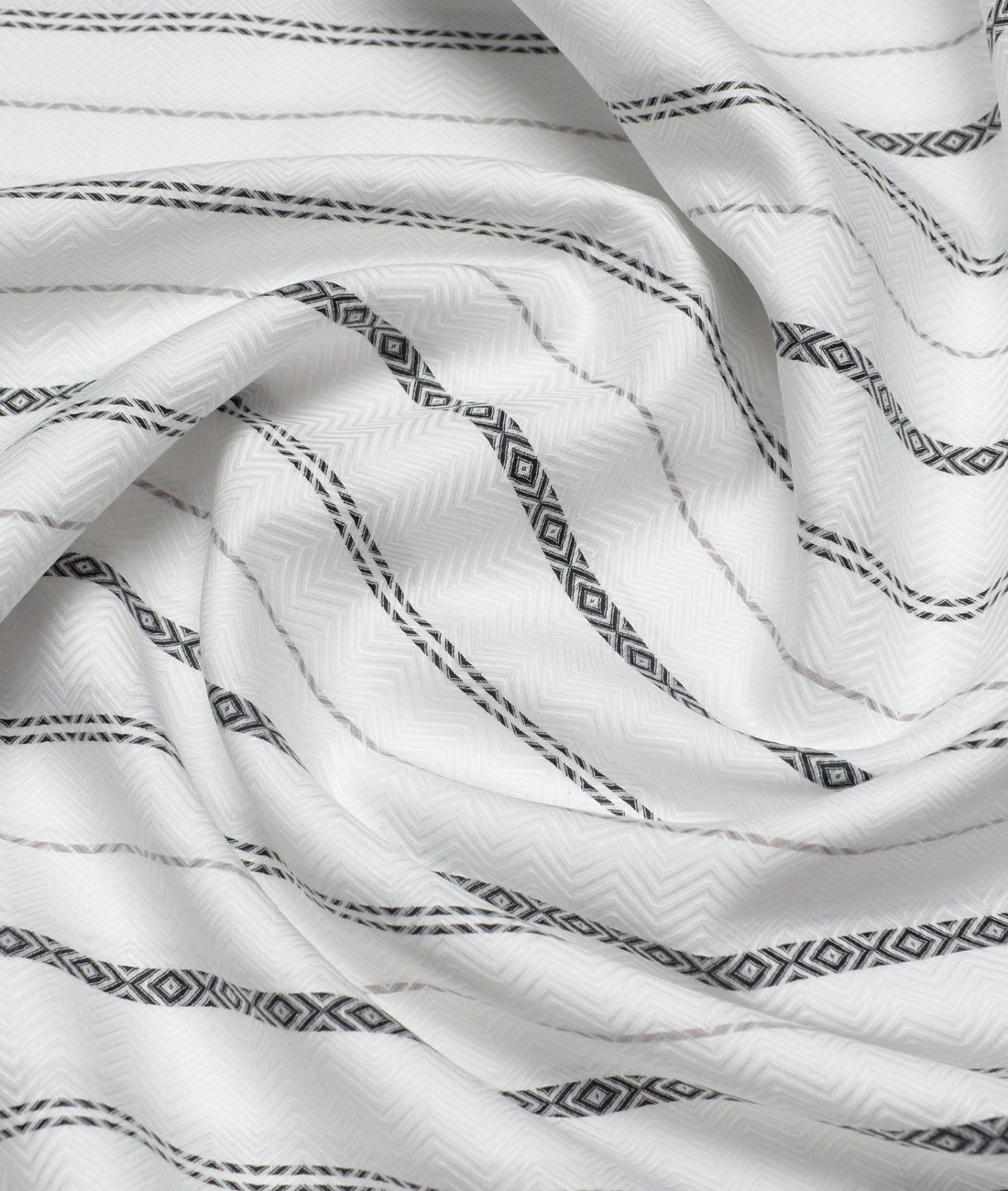 Color: White base with Black & Grey Jacquard Woven Stripes,