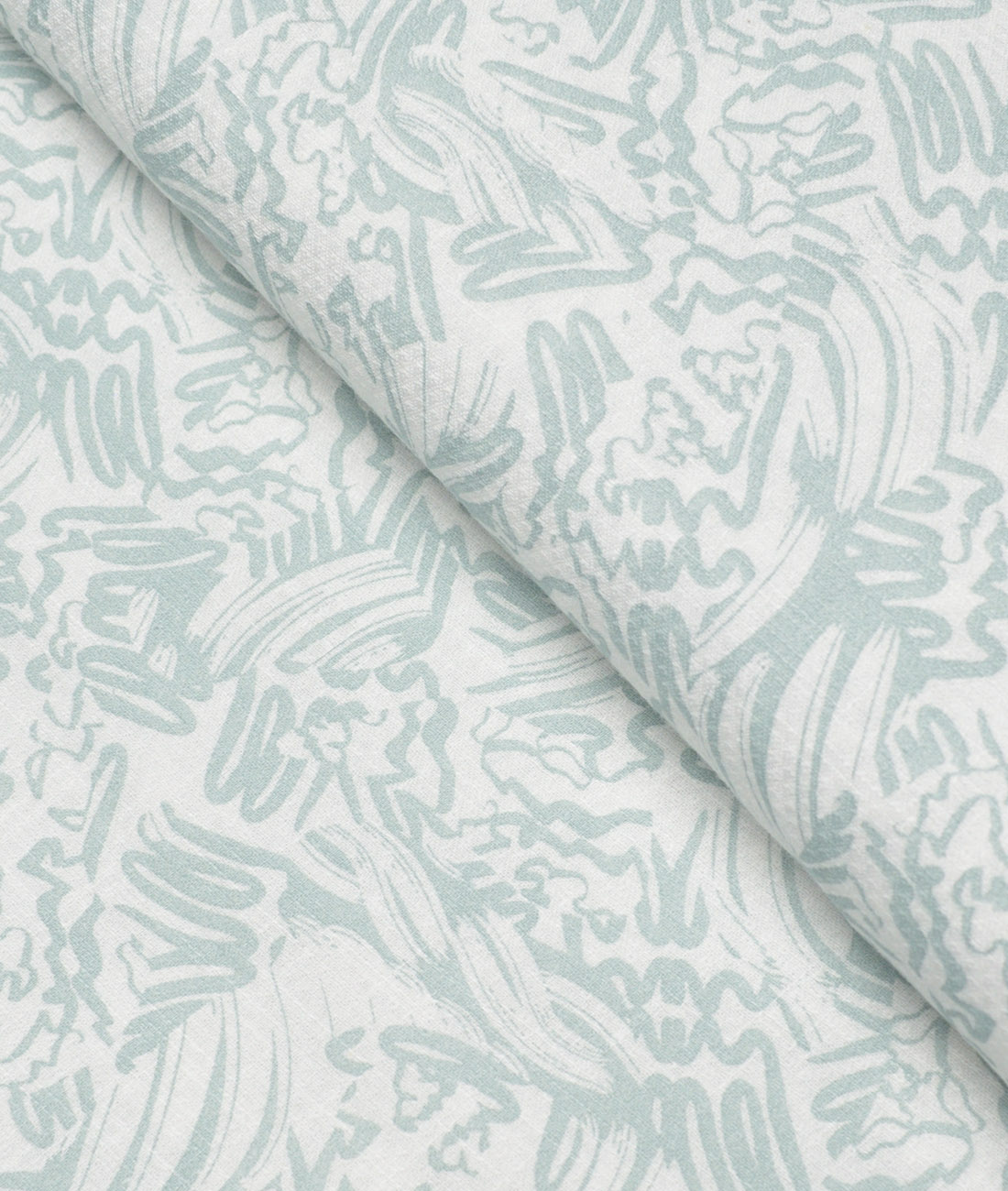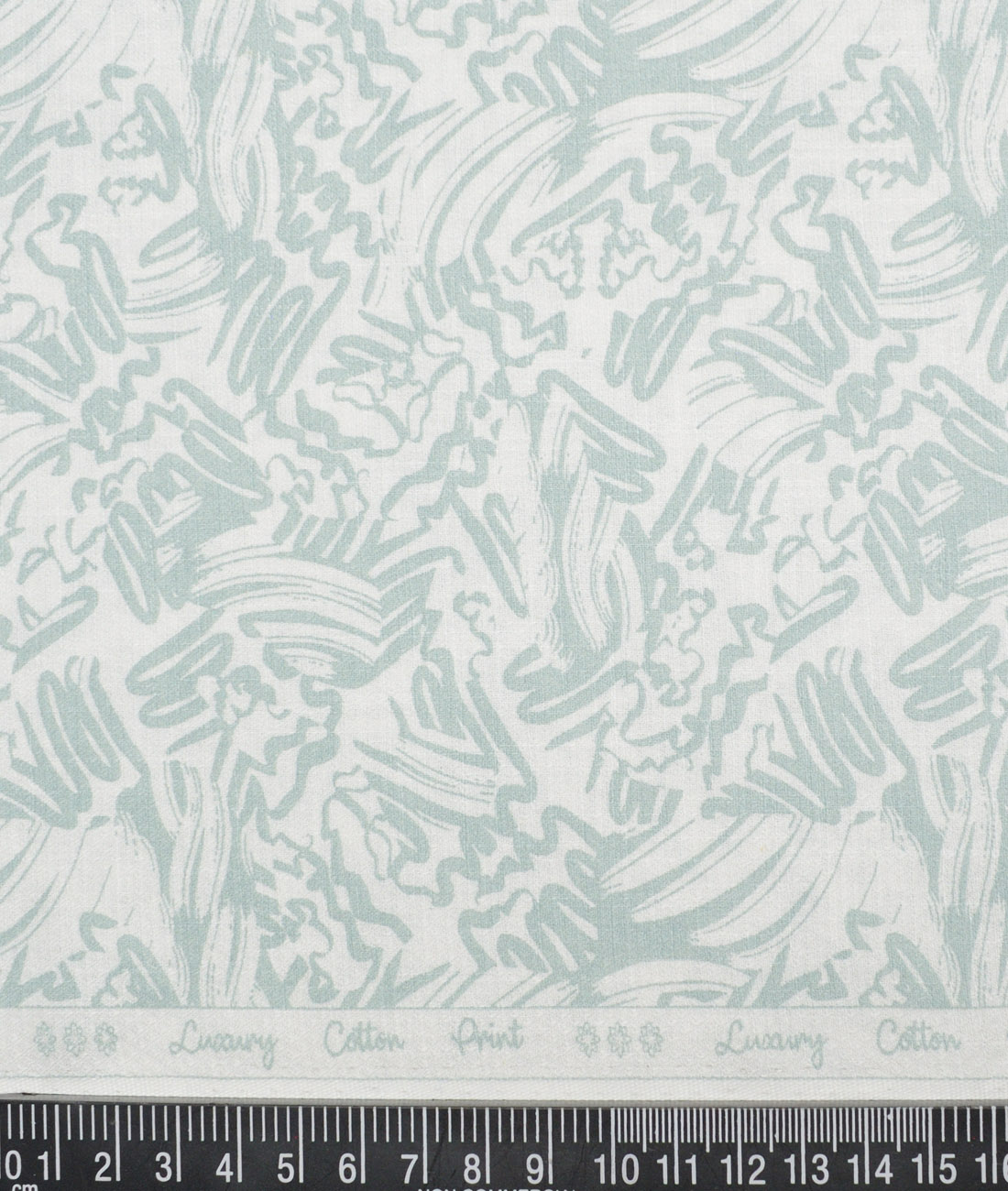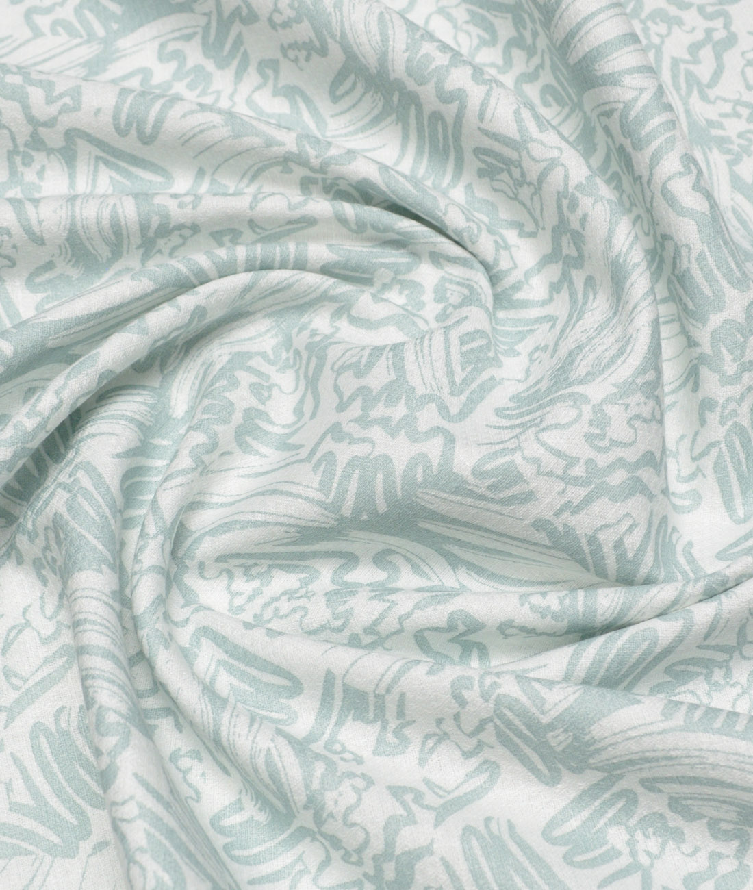 Color: White Dobby Weave base with Green Abstract Print,