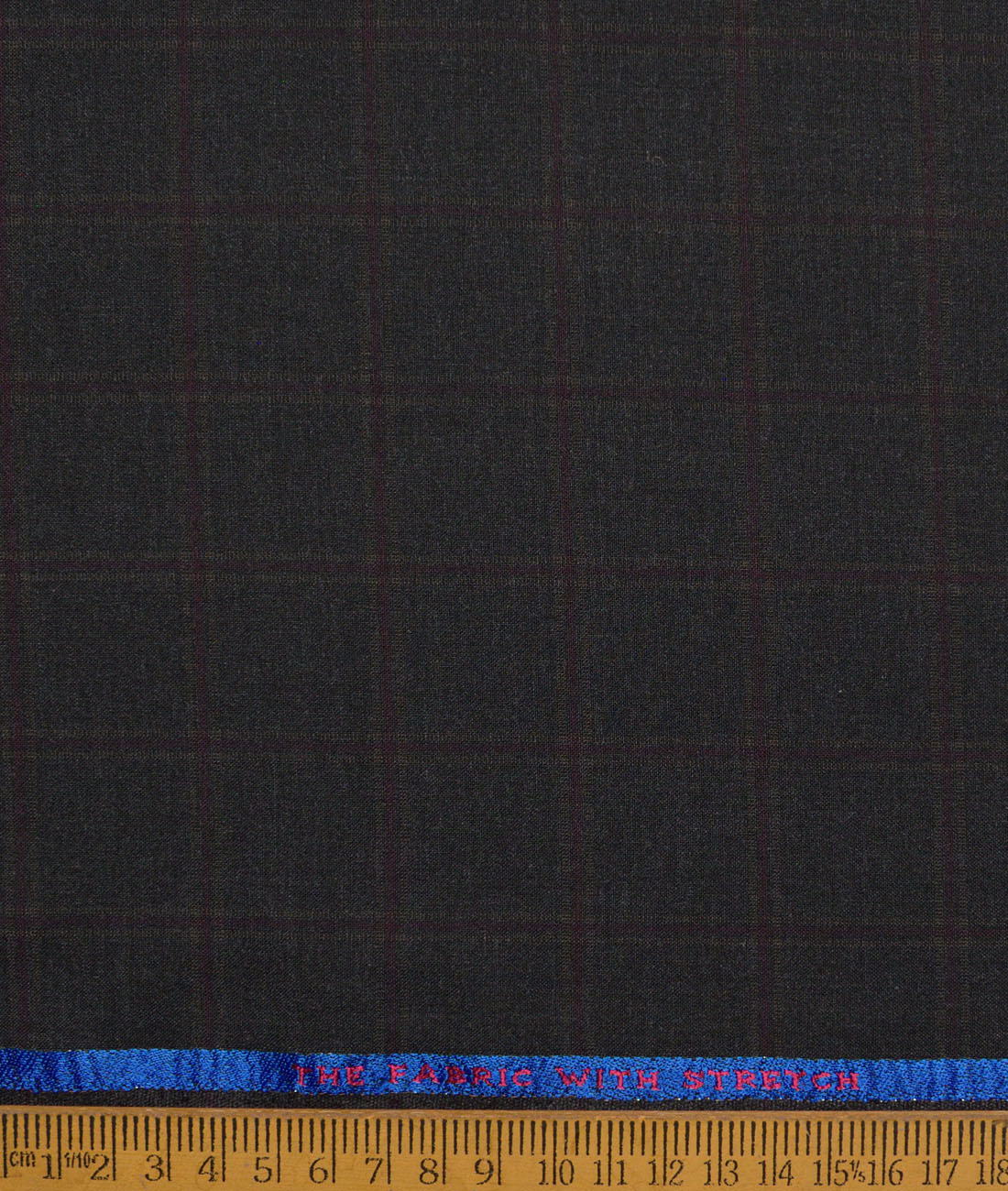 OCM Terry Rayon Checks Stretchable Suiting Fabric (Blackish Grey)