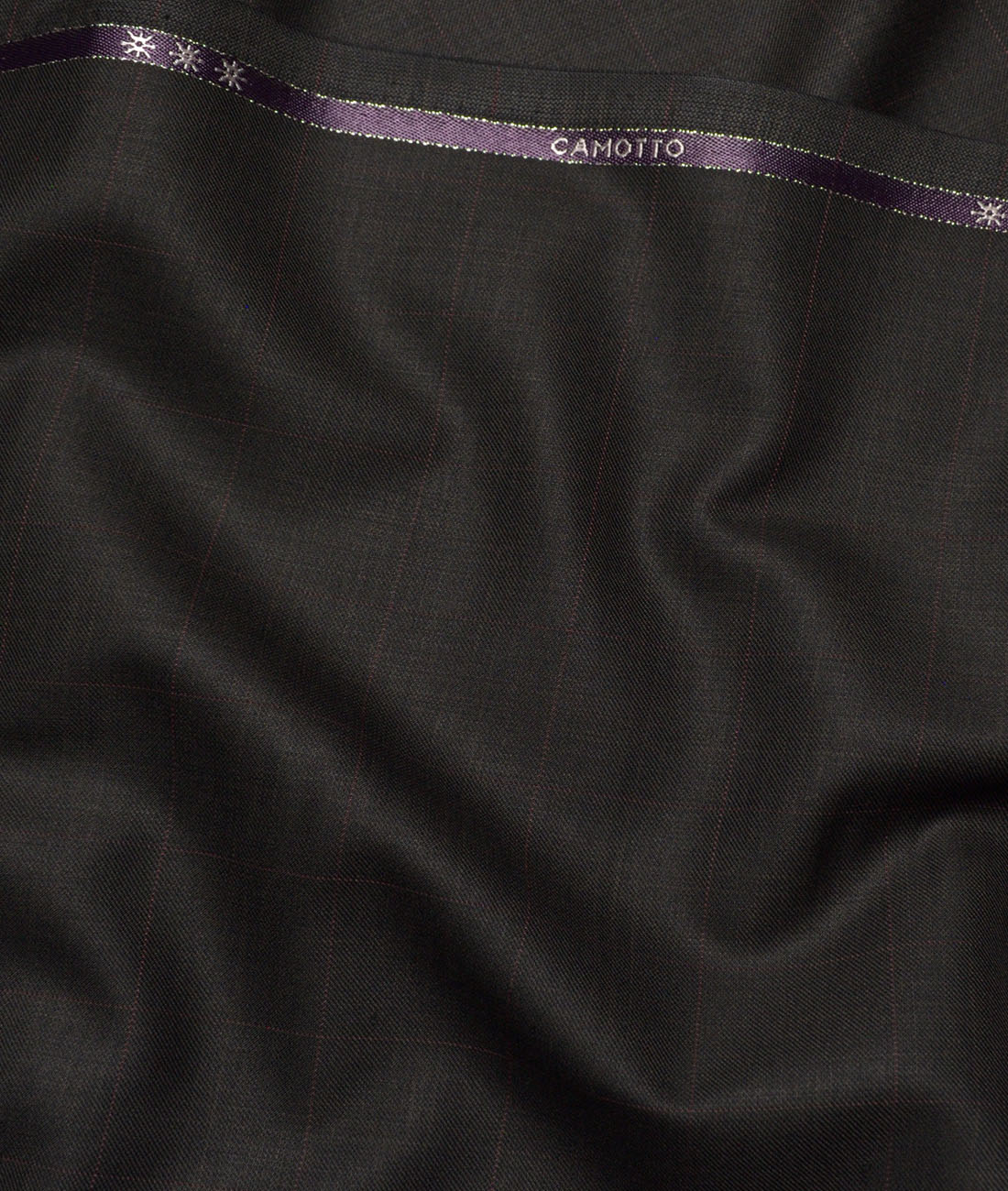 OCM Terry Rayon Checks Suiting Fabric (Dark Brown)