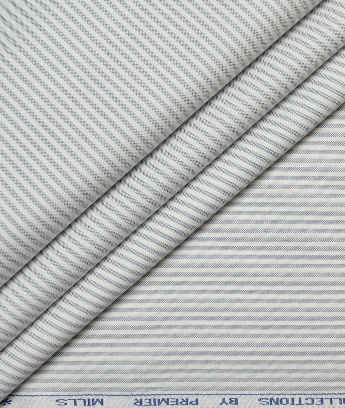 Premier Mills Cotton Striped Shirting Fabric (White & Grey)
