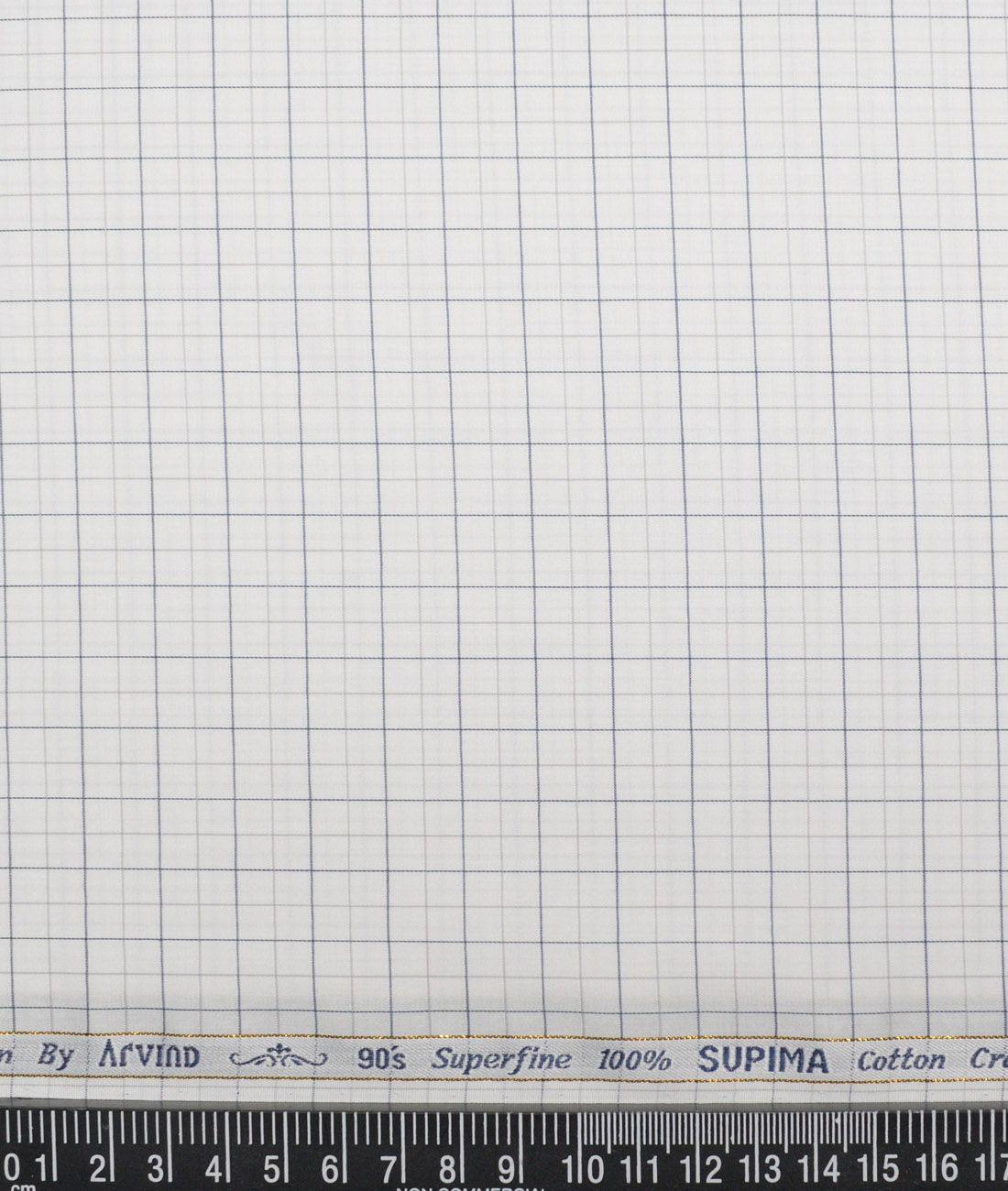 Primante by Arvind 1 Ply 90’s Supima Cotton Checks Shirting Fabric (White)