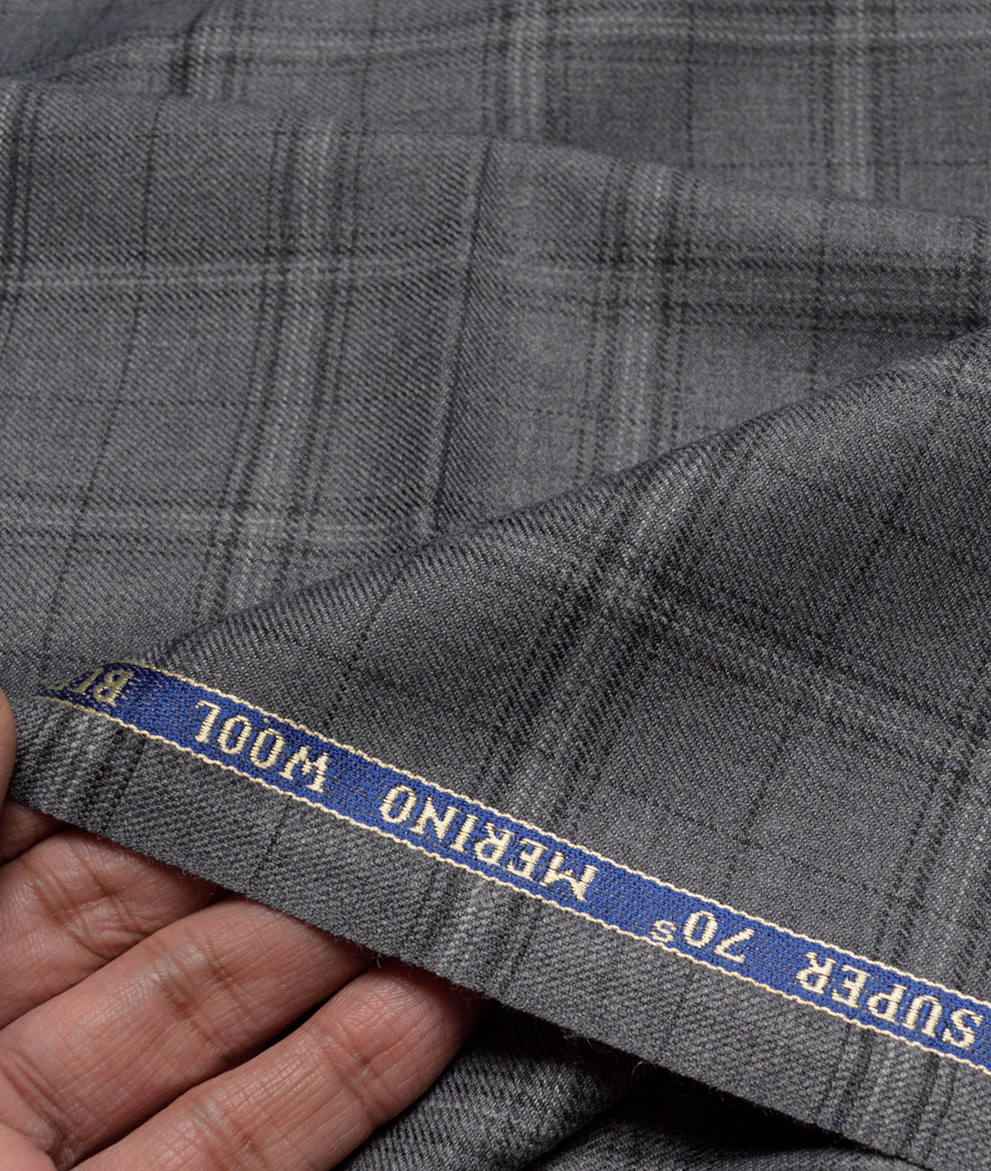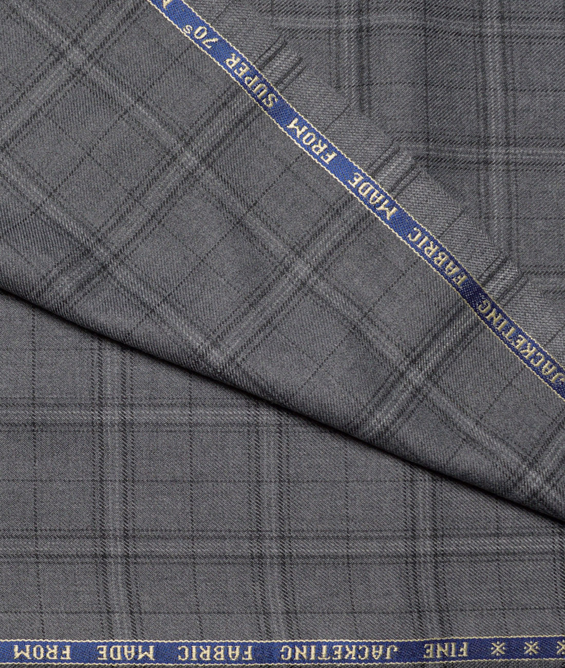 Raymond Men’s 52% Merino Wool Super 70’s Checks Unstitched Tweed Jacketing & Blazer Fabric (Grey)