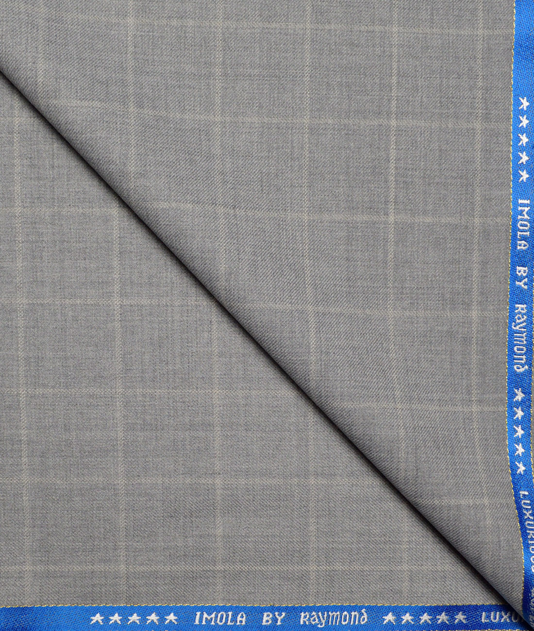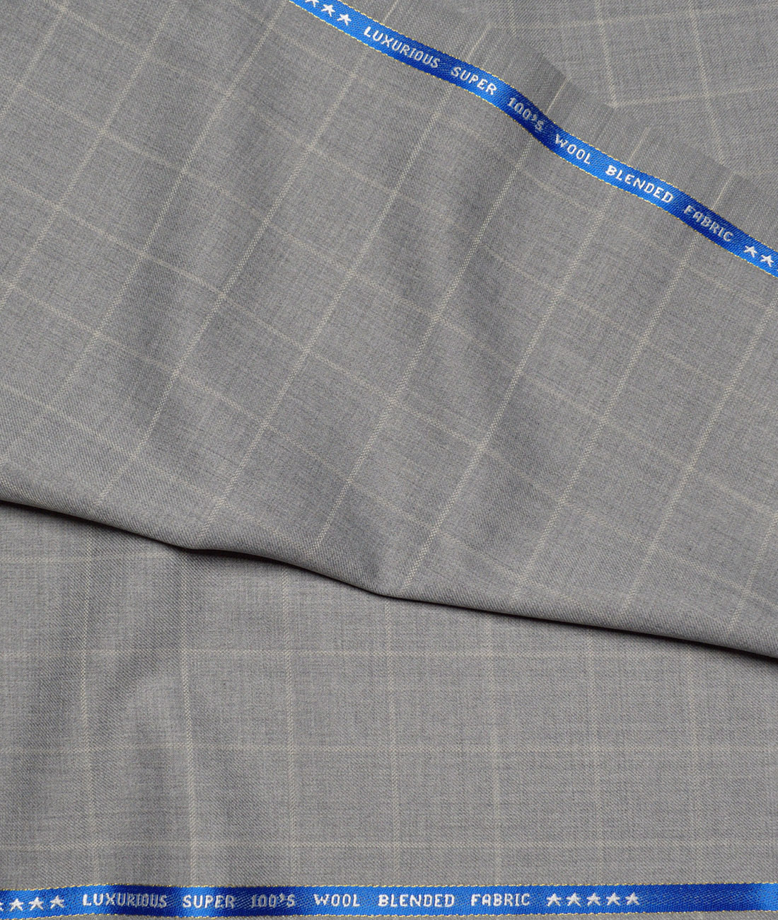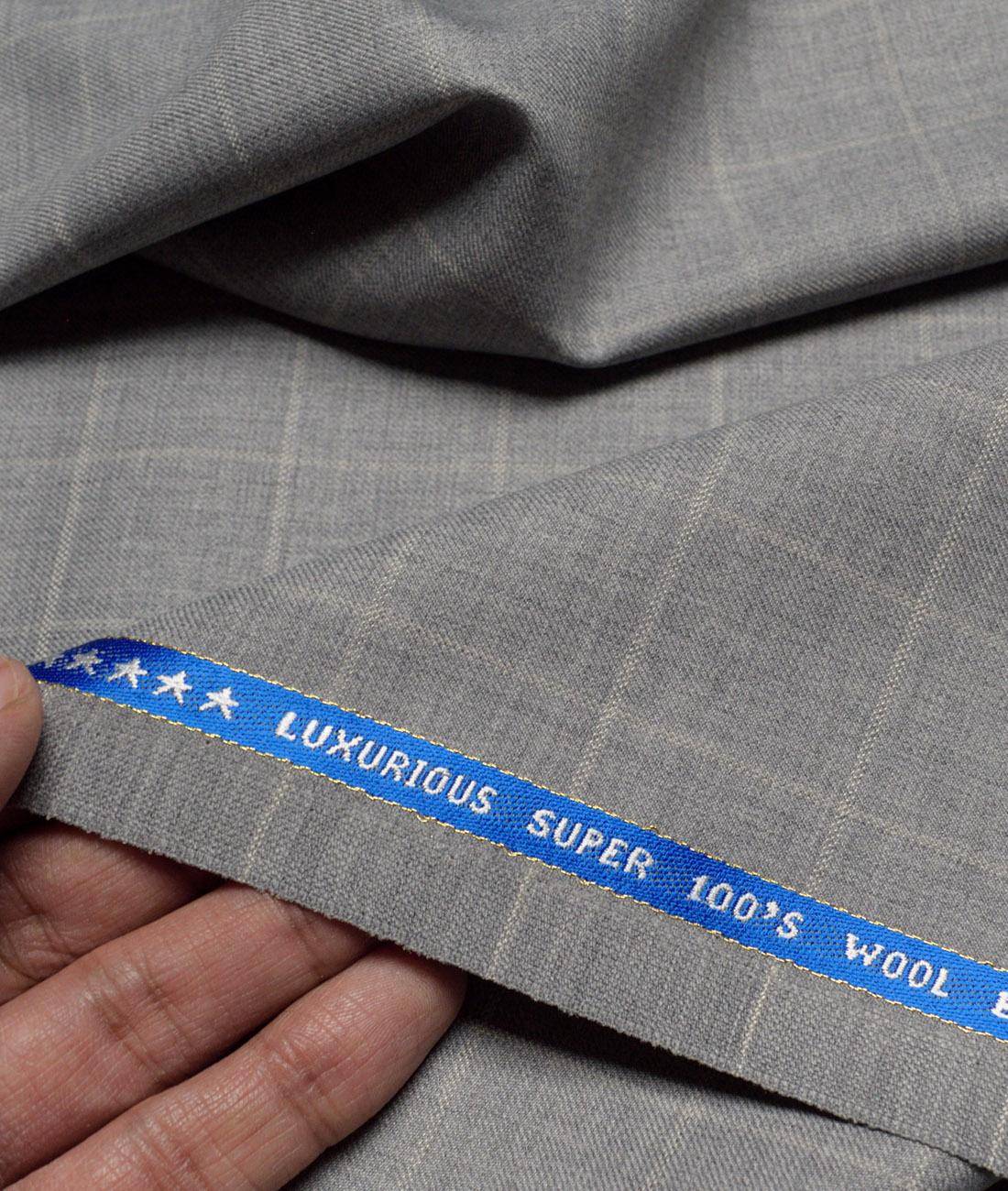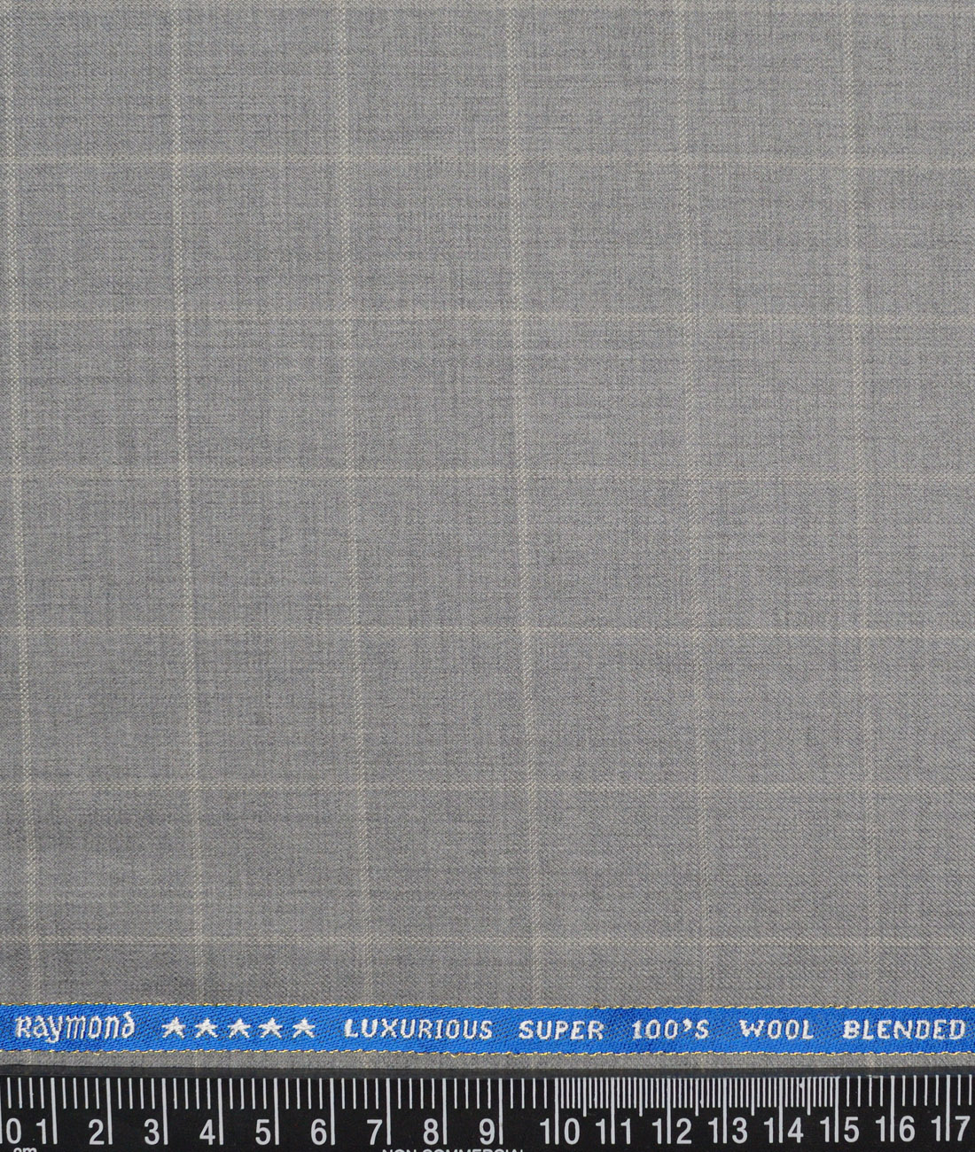 Raymond Super 100’s Checks 50% Merino Wool Suiting Fabric (Light Grey)