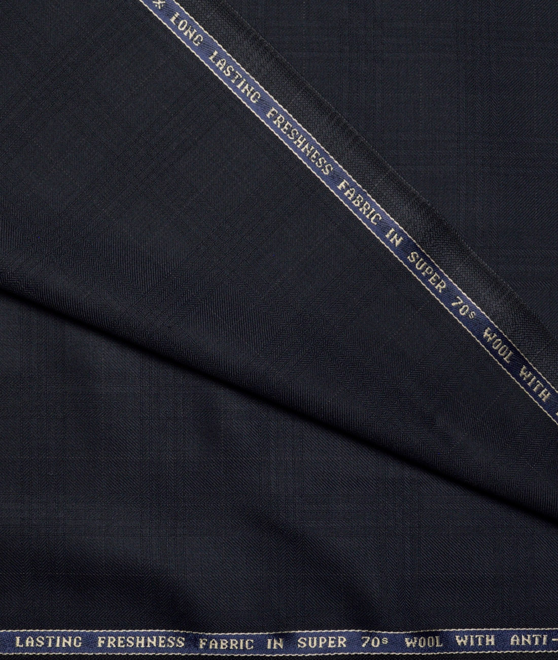 Raymond Super 70’s Checks 35% Merino Wool Suiting Fabric (Dark Navy Blue)