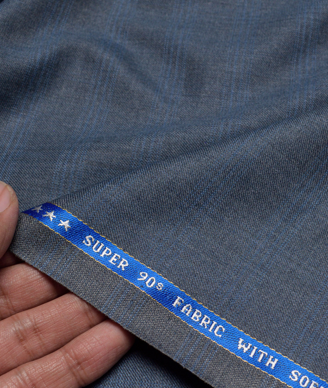 Raymond Super 90’s Checks 27% Merino Wool Suiting Fabric (Grey & Blue)