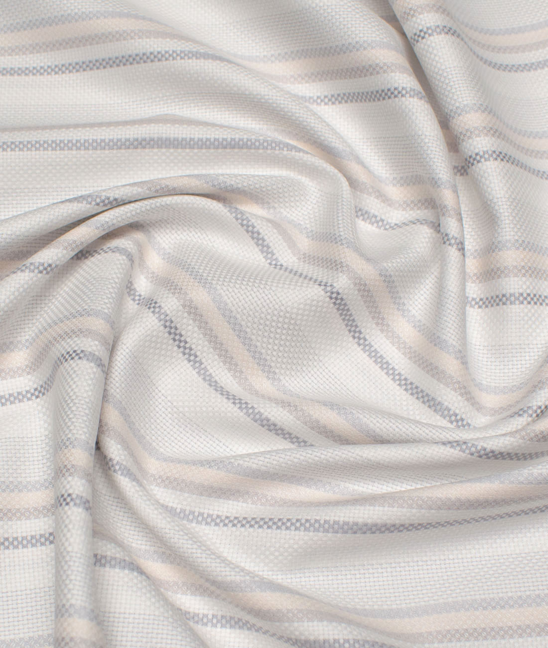 Color: White Oxford Weave base with Grey & Peach Stripes,