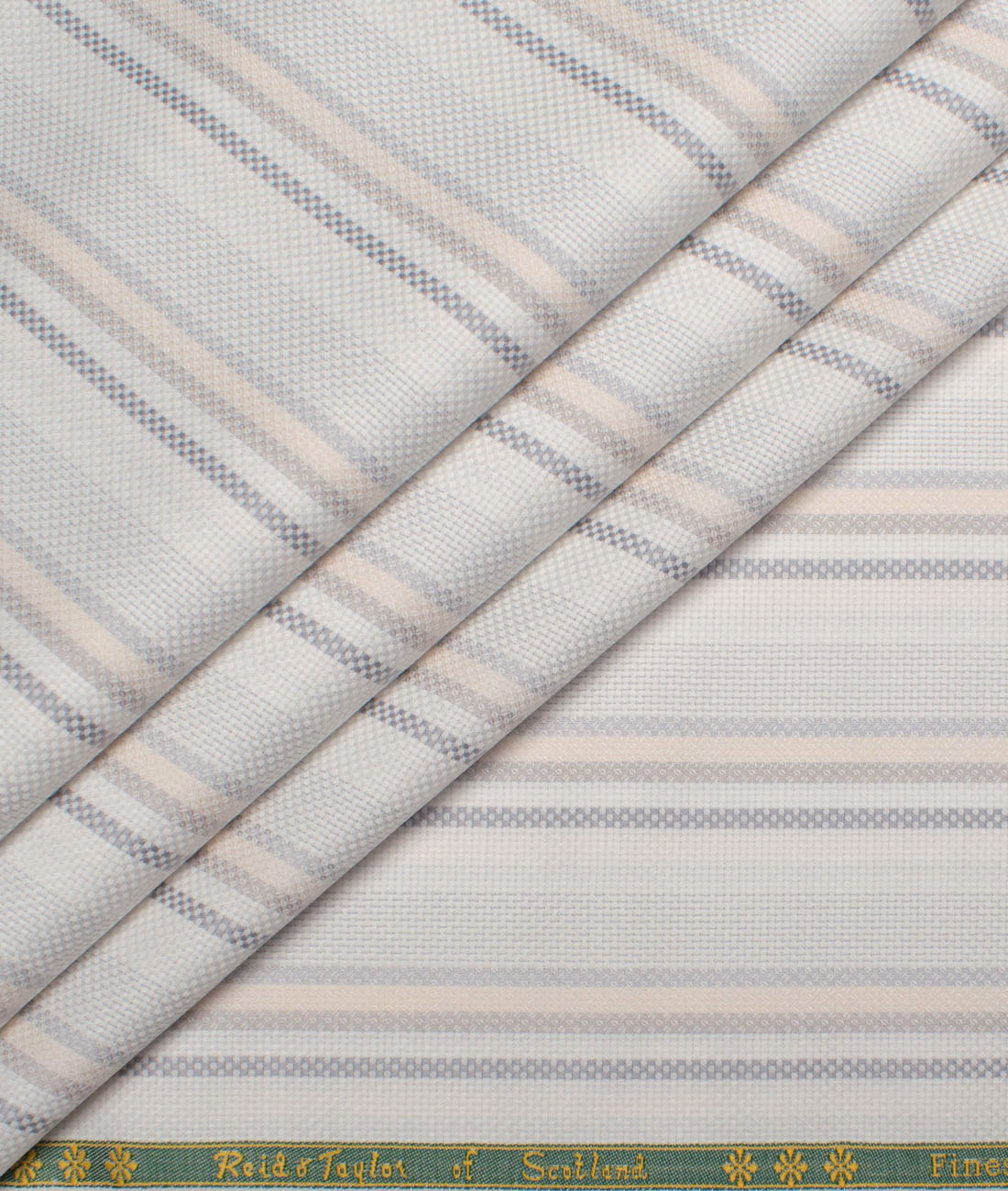 Reid & Taylor Giza Cotton Striped Shirting Fabric (White & Peach)