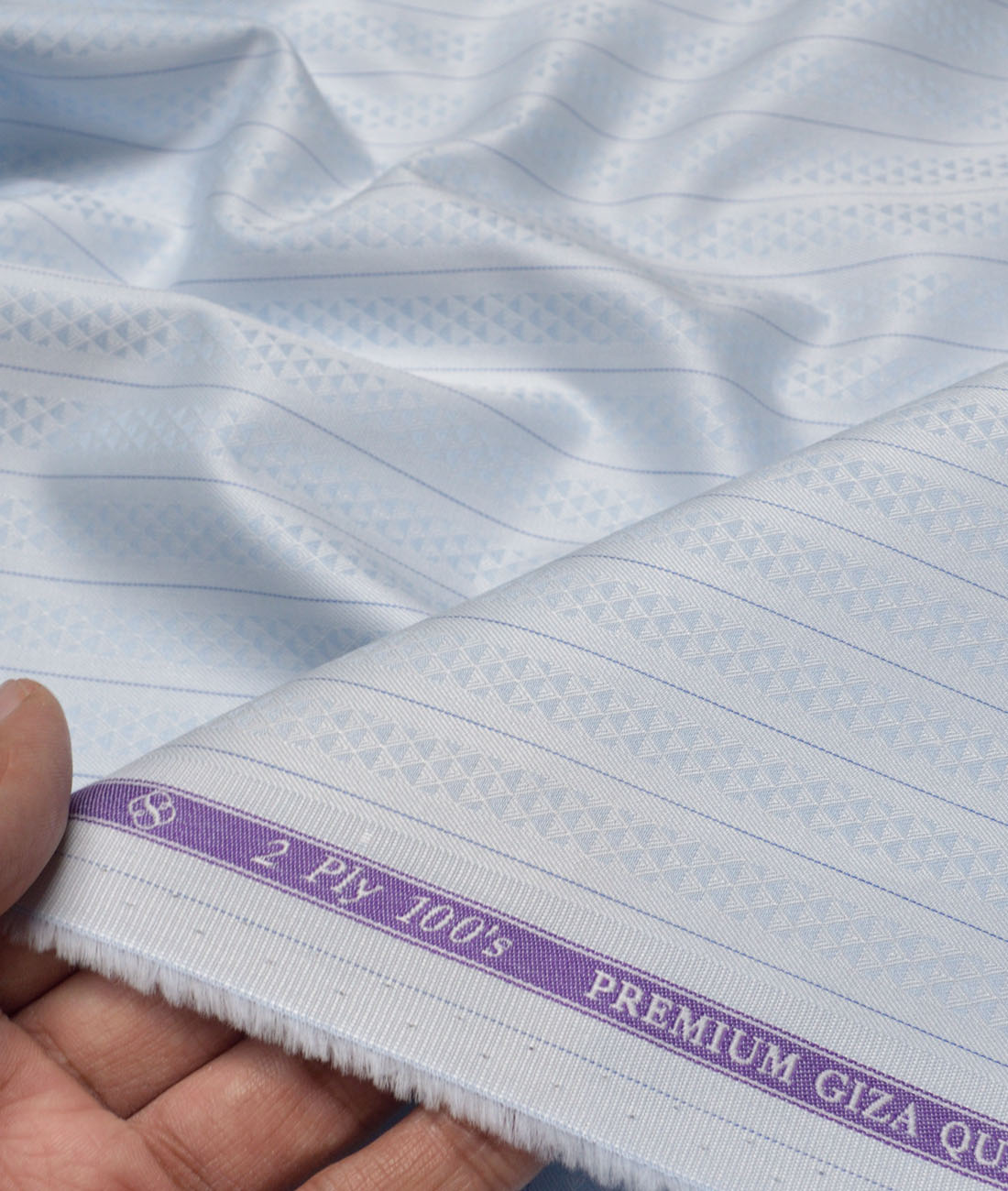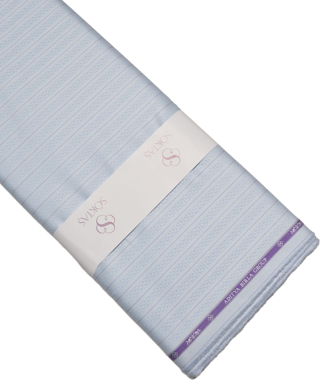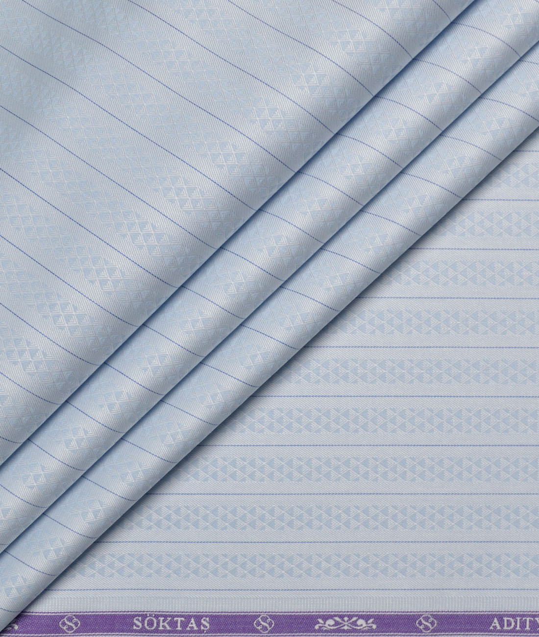 Soktas 2 Ply 100’s Giza Cotton Striped Shirting Fabric (Sky Blue)