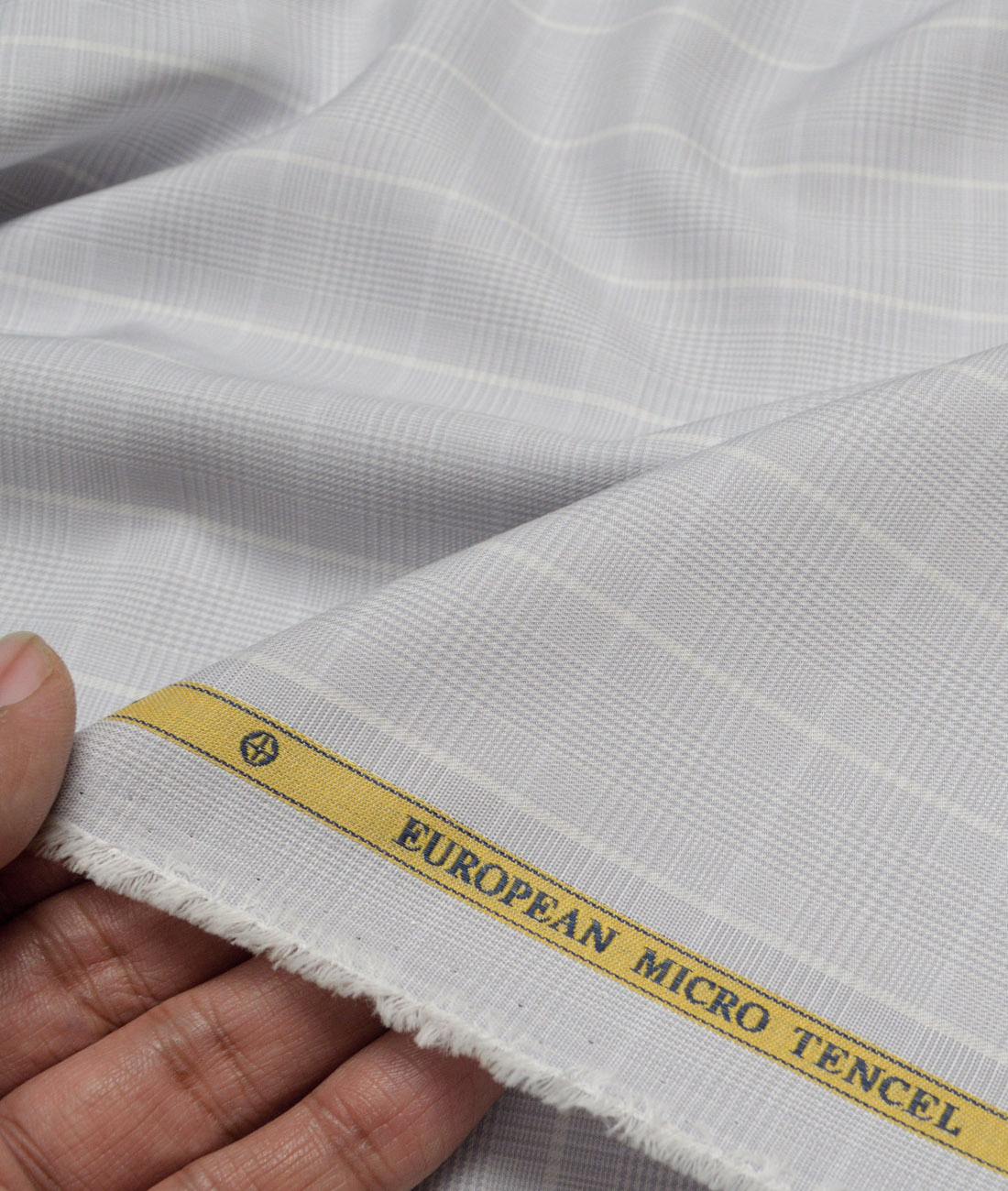 Soktas Cotton Tencel Checks Shirting Fabric (Grey)