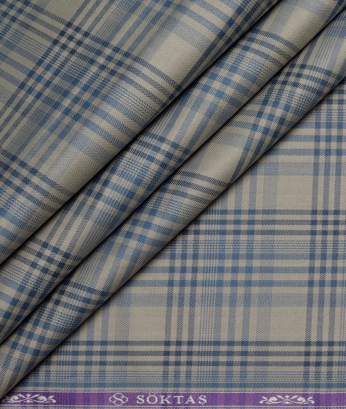 Soktas Giza Cotton Checks Shirting Fabric (Light Brown)