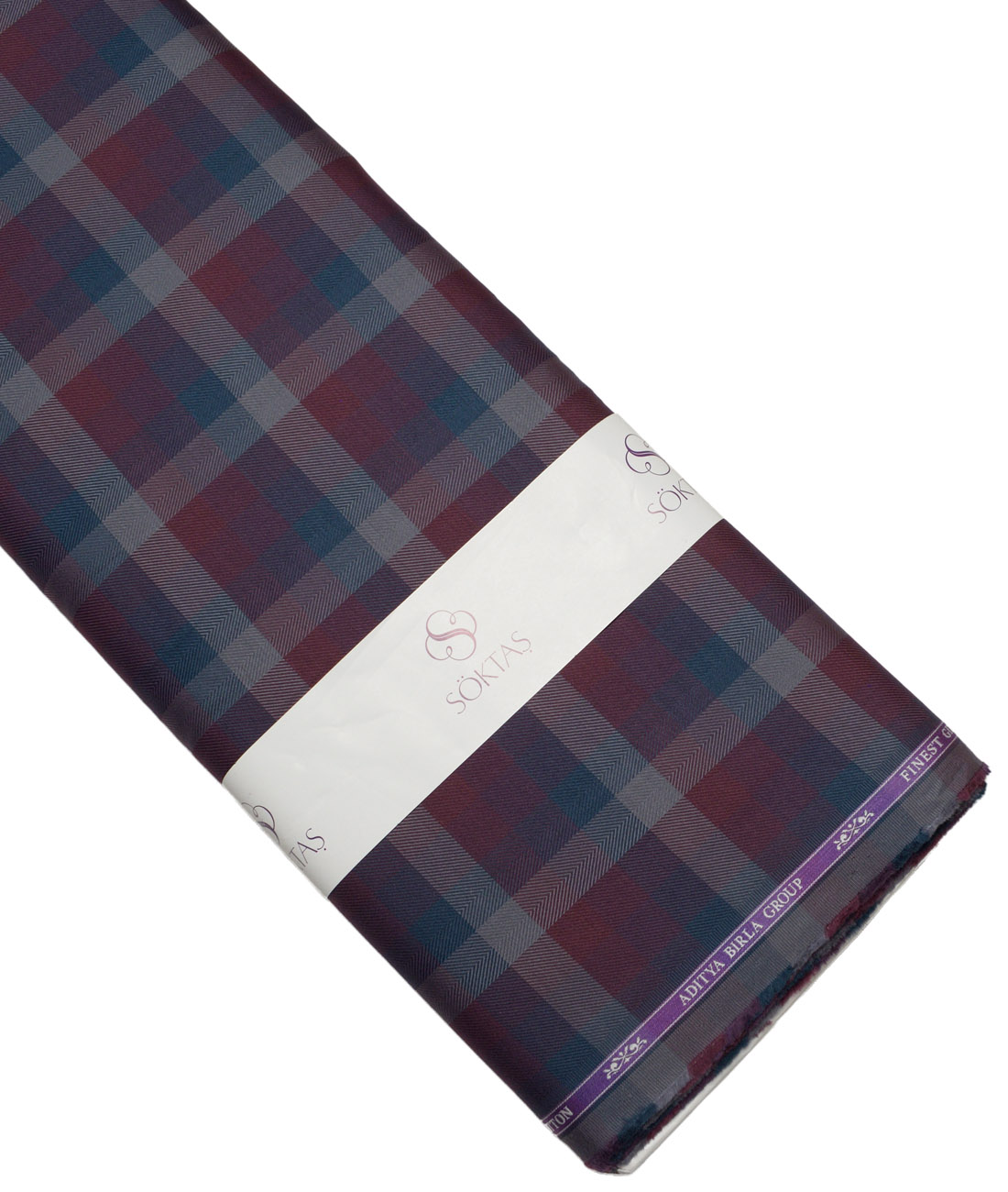 Soktas Giza Cotton Checks Shirting Fabric (Maroon)