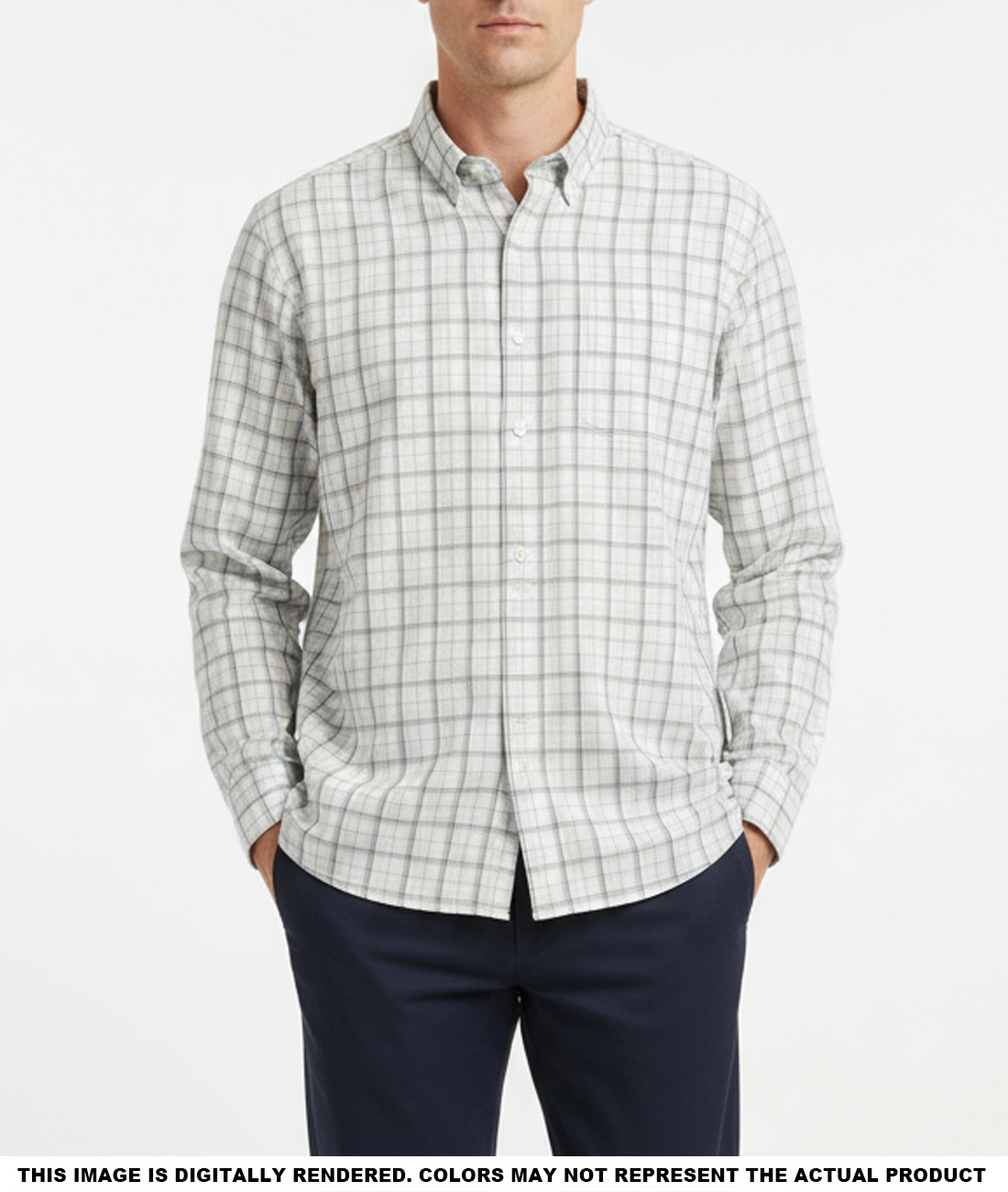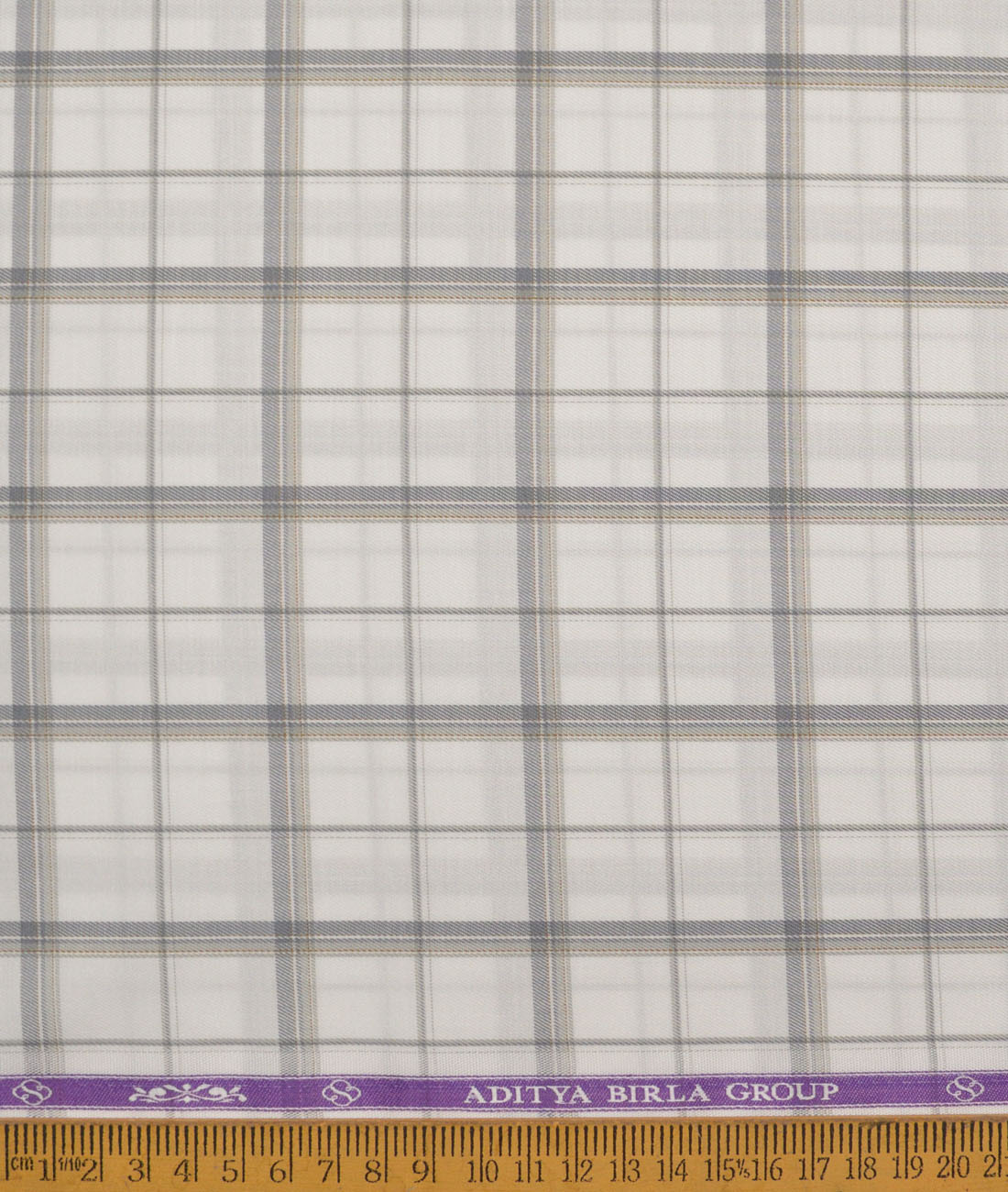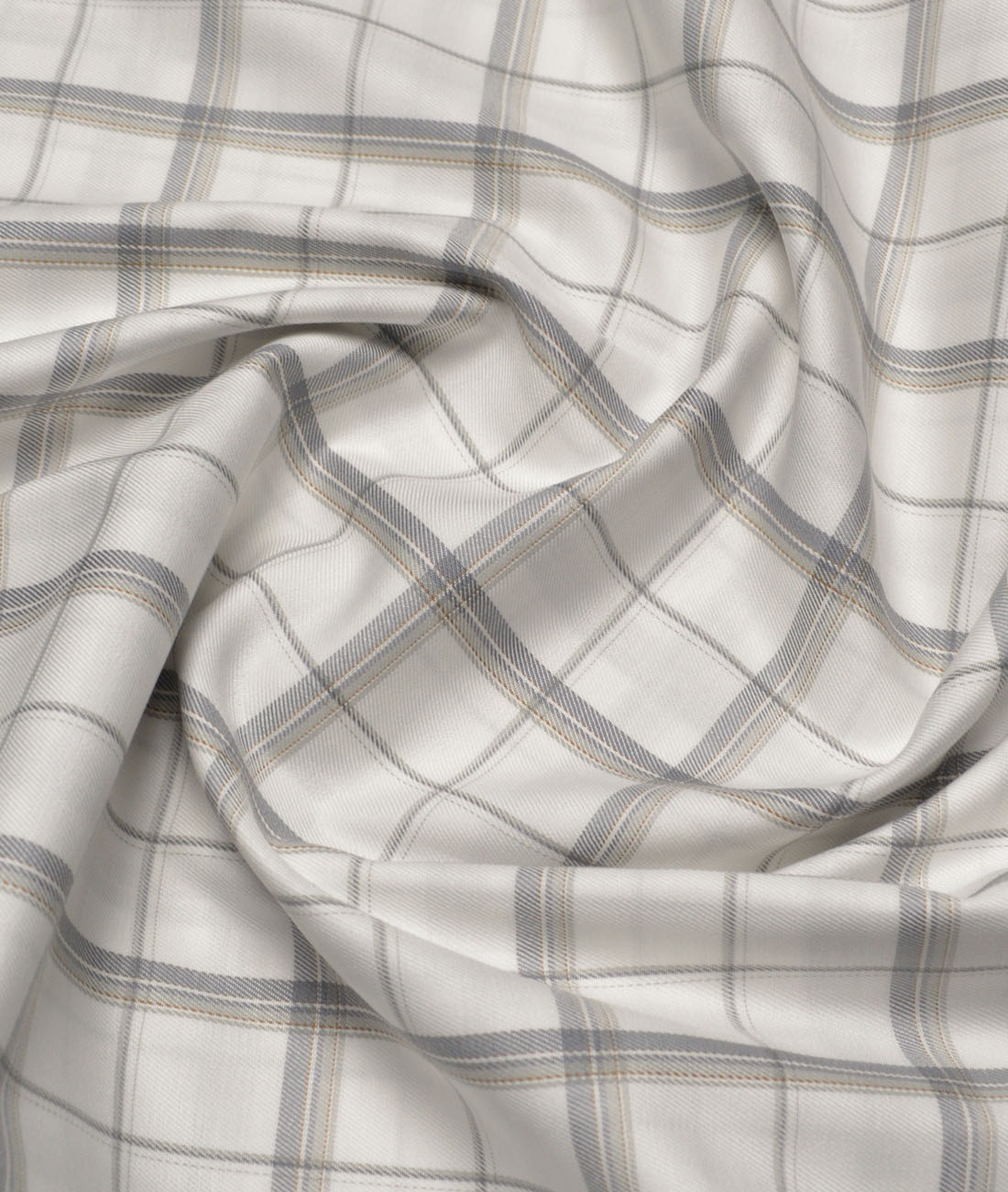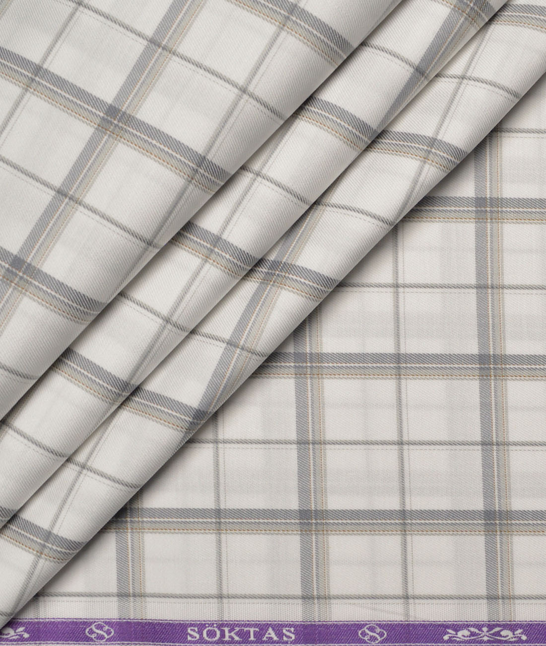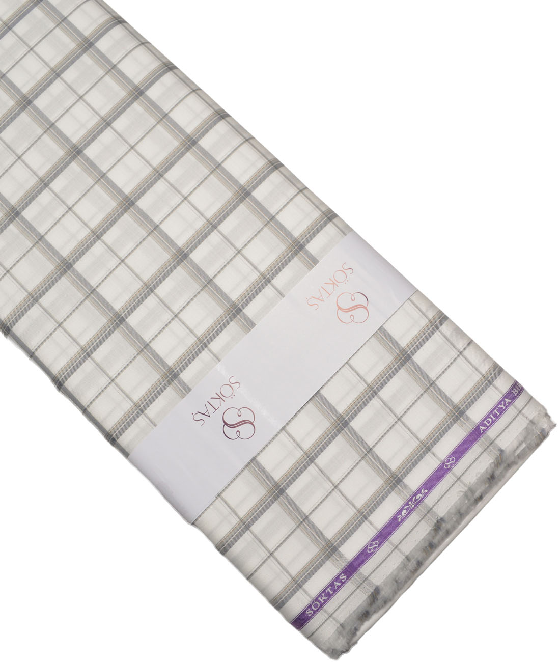 Soktas Giza Cotton Checks Shirting Fabric (White & Grey)