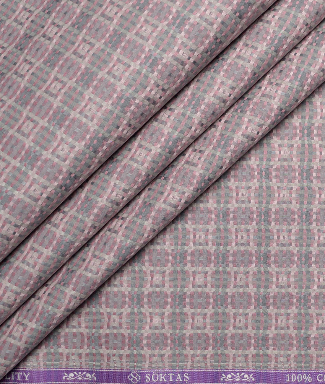 Soktas Giza Cotton Self Design Shirting Fabric (Pink)