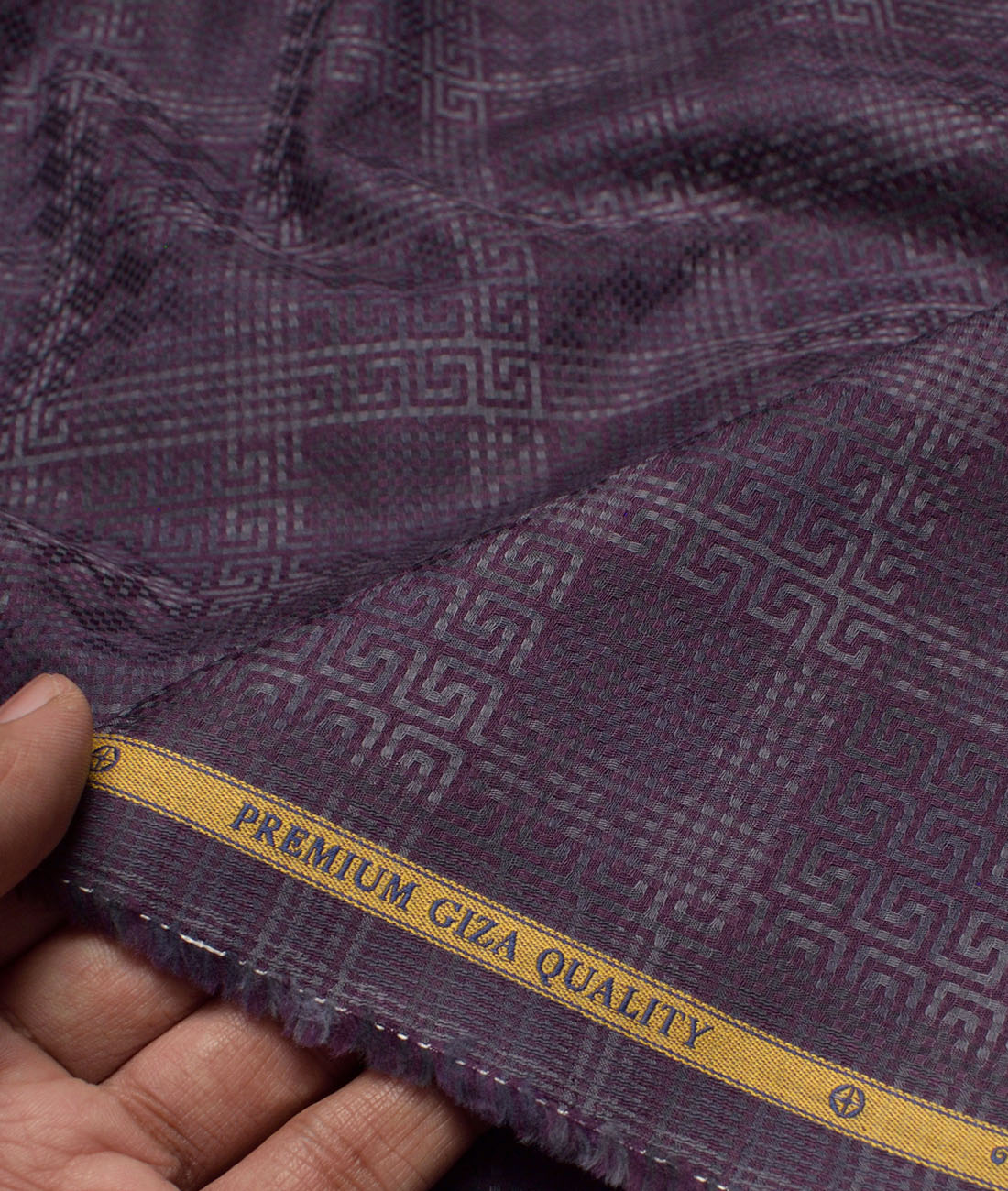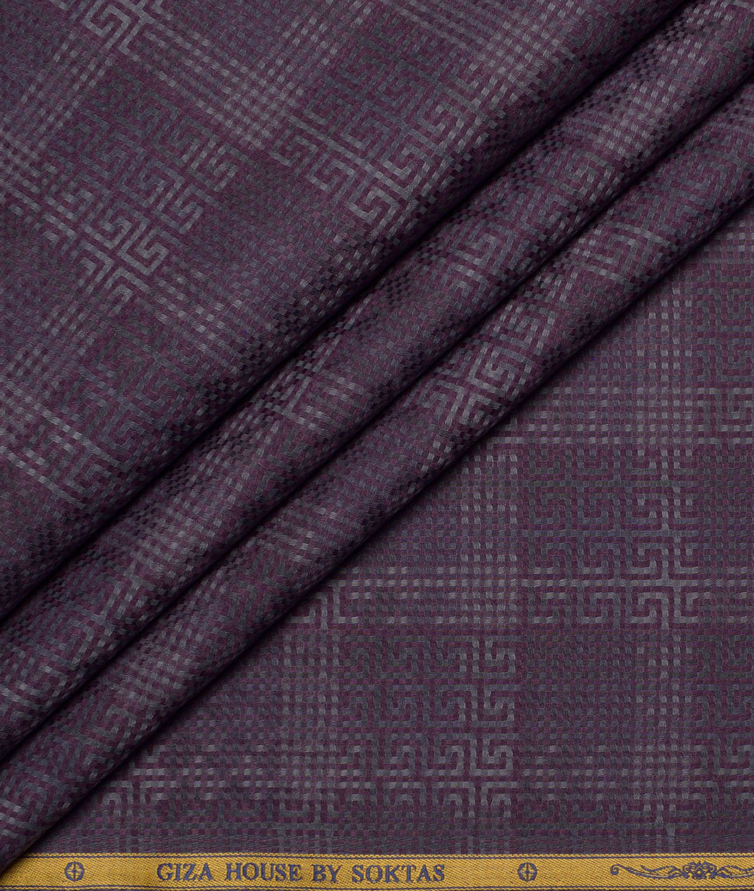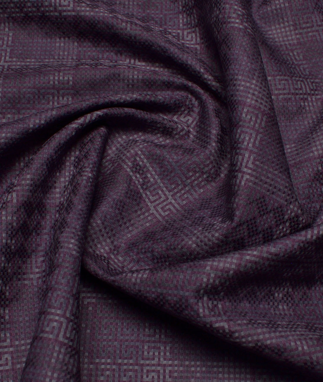 Color: Purple base with Grey Greek Key Dobby Weave Pattern,