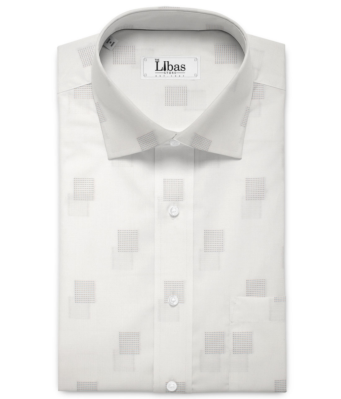 Color: White base with Jacquard Weave Self Checks & Black Squares Dobby,