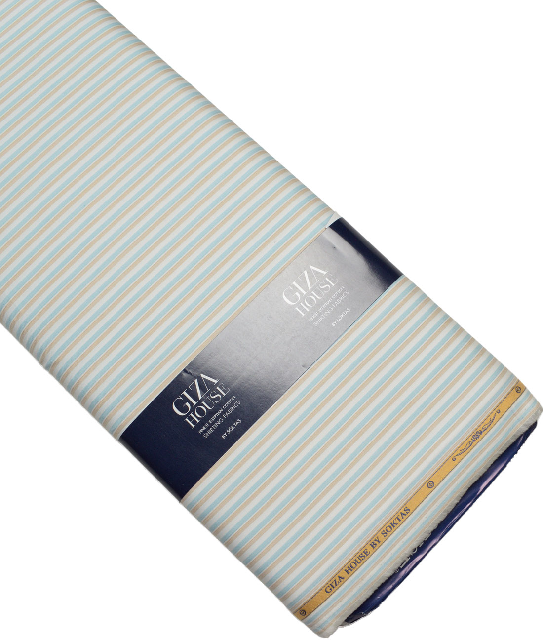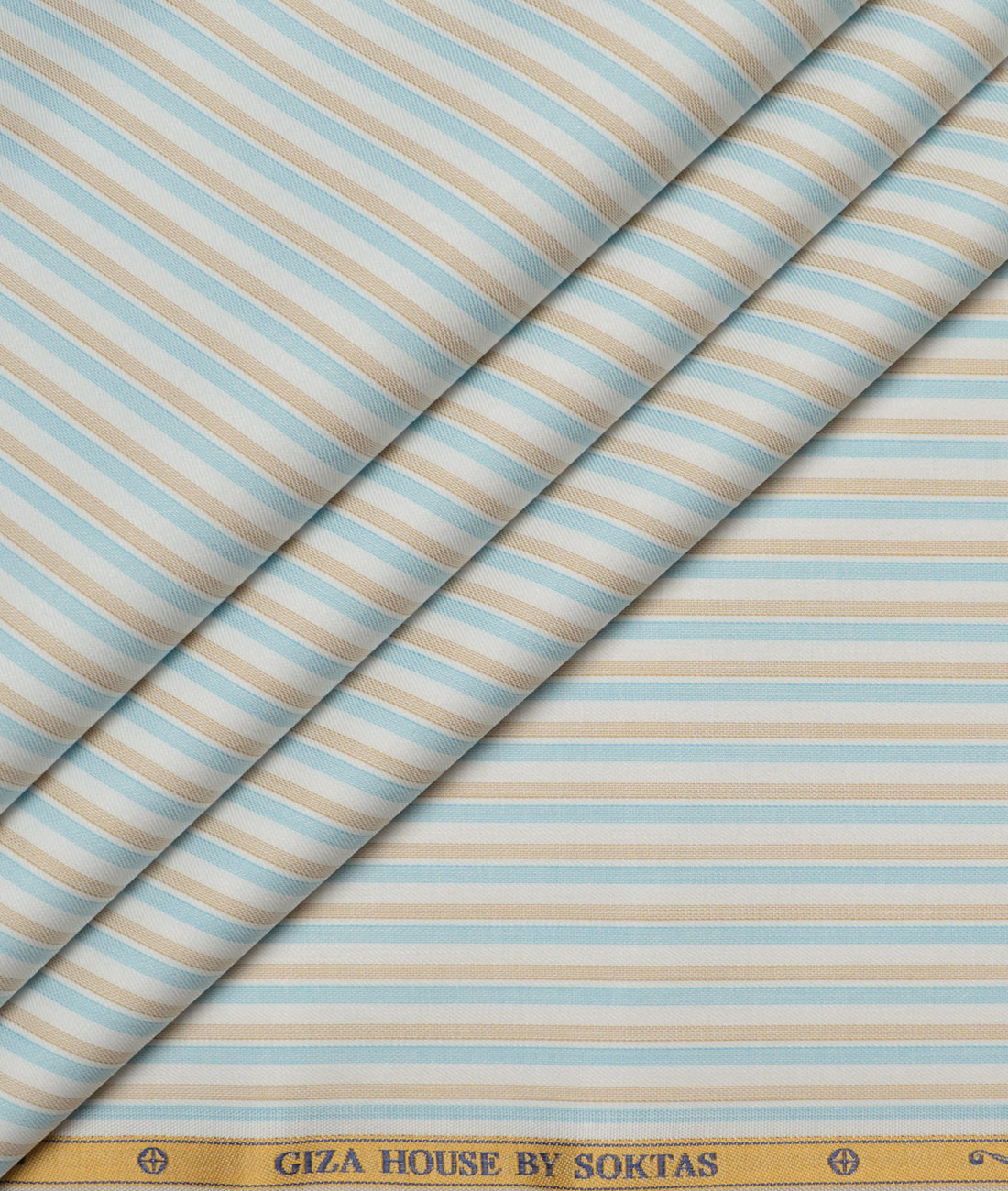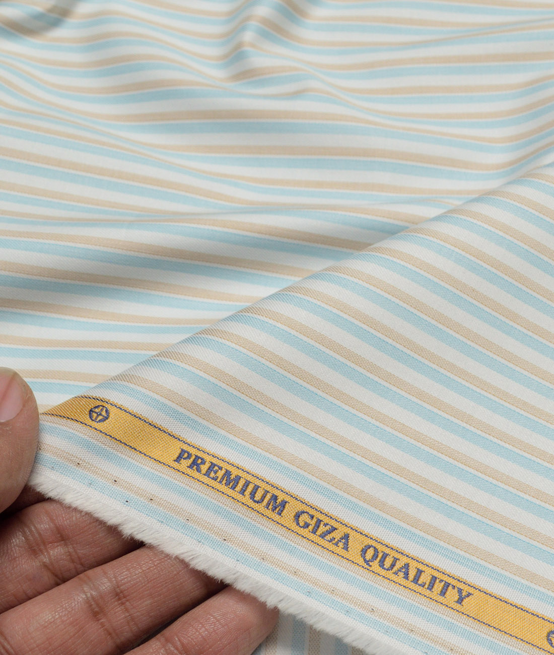 Color: White base with Light Brown & Firozi Blue Stripes,