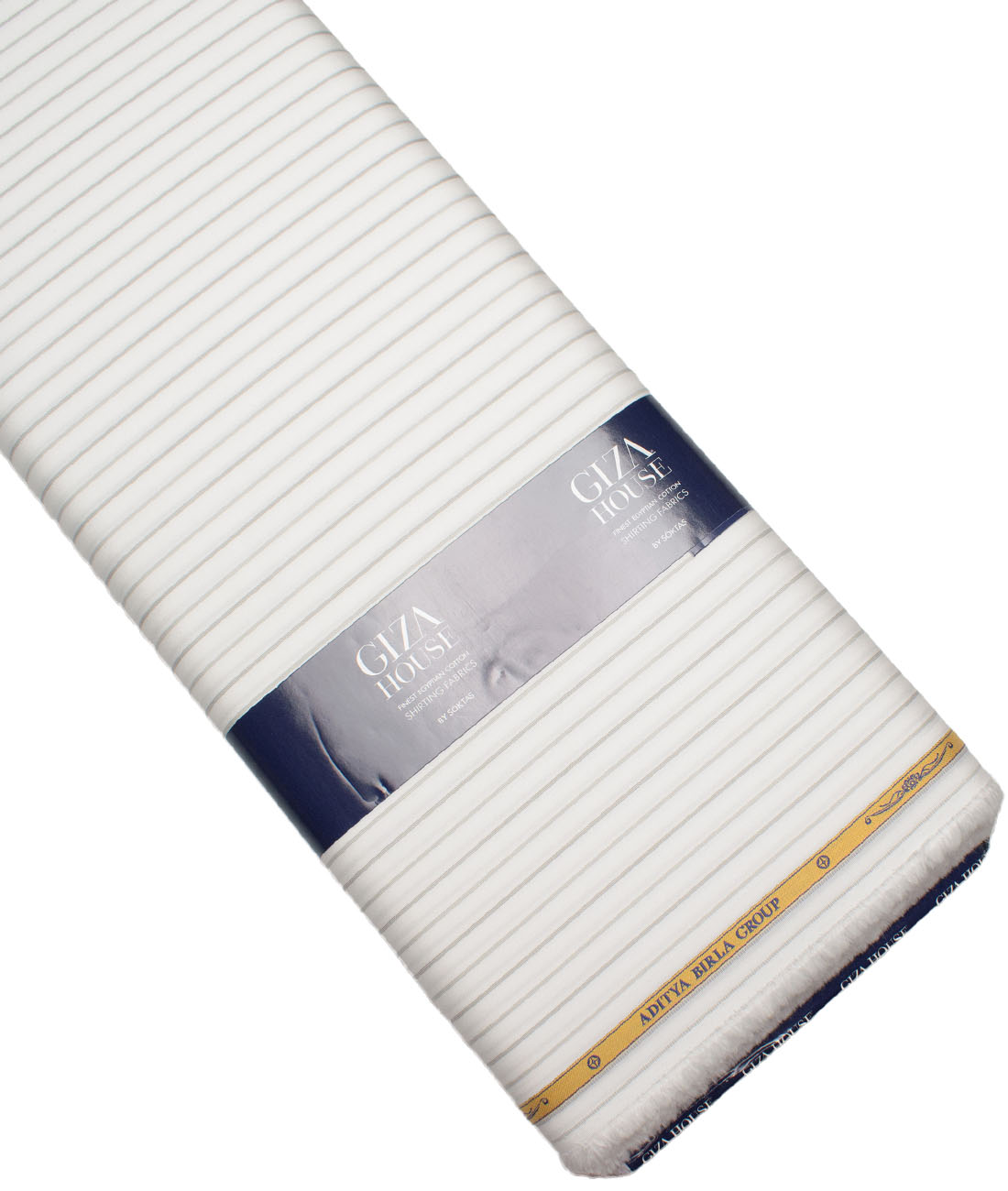Soktas Giza Cotton Striped Shirting Fabric (White & Grey)