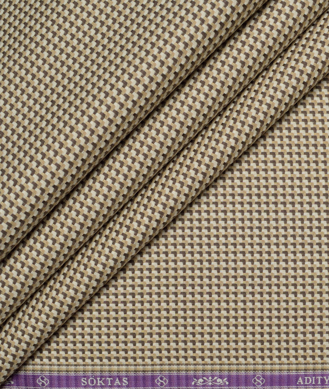 Soktas Giza Cotton Structured Shirting Fabric (Beige & Brown)