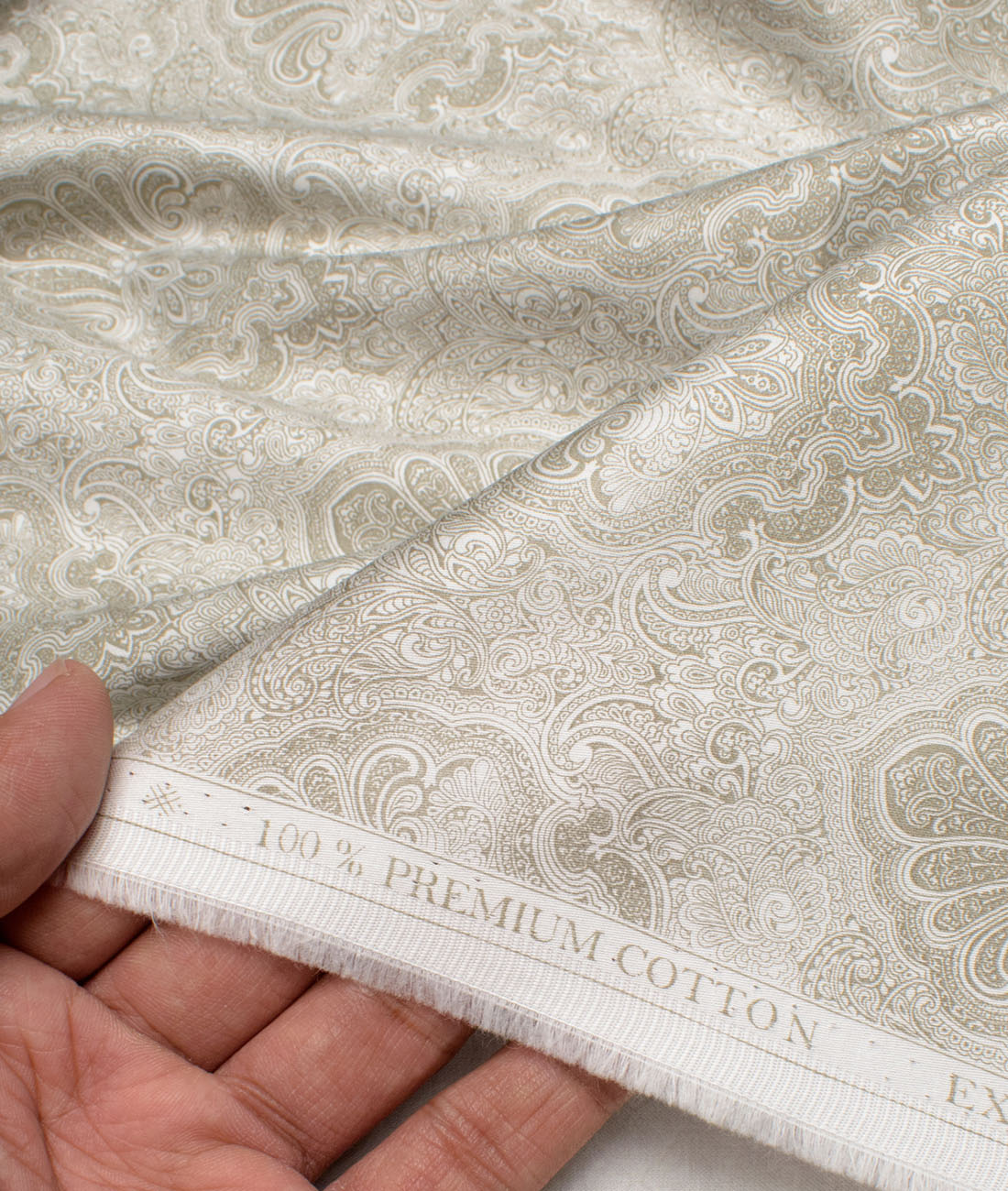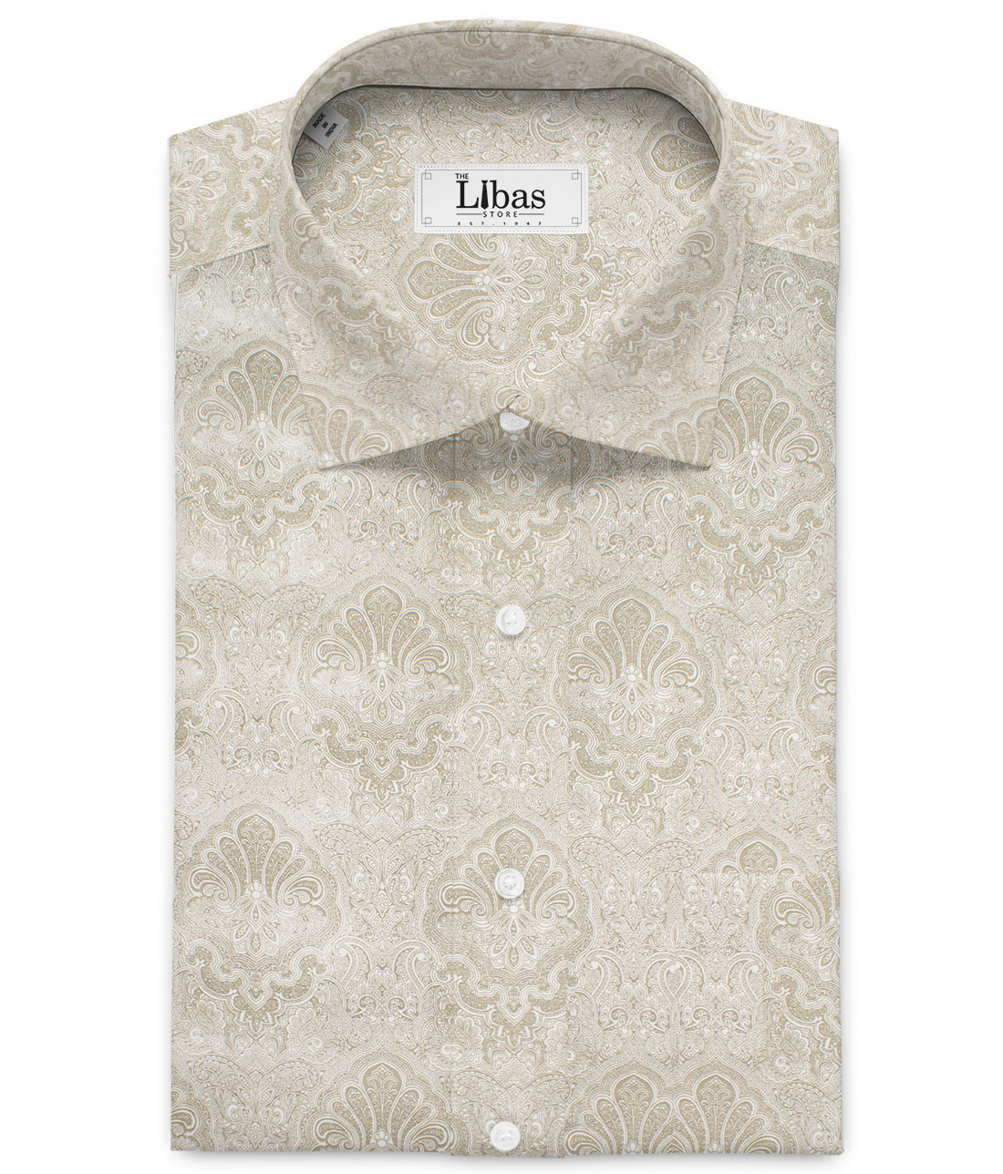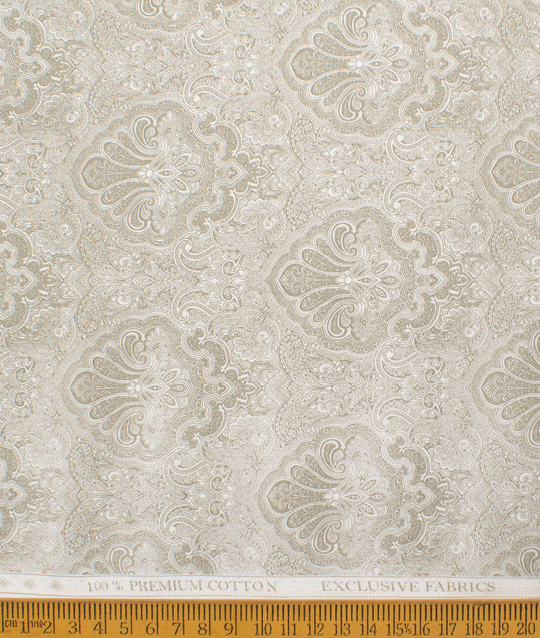 Solino Men’s Premium Cotton Printed Unstitched Shirting Fabric (White & Brown)