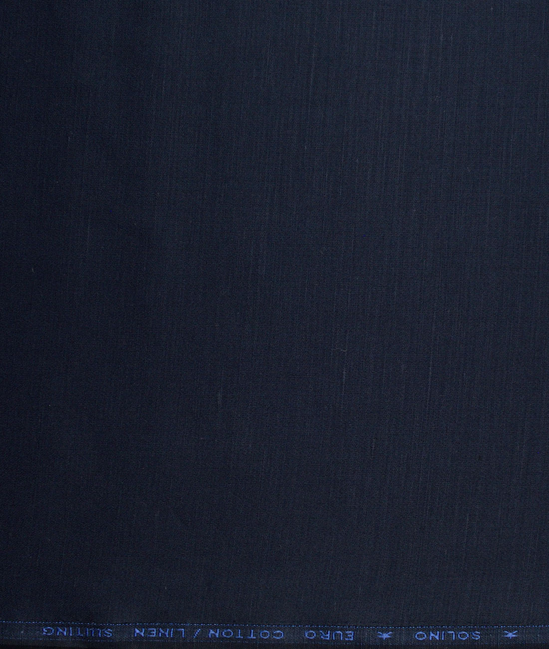 Solino Solids European Cotton Linen Stretchable Trouser or Chinos Fabric (Dark Royal Blue)