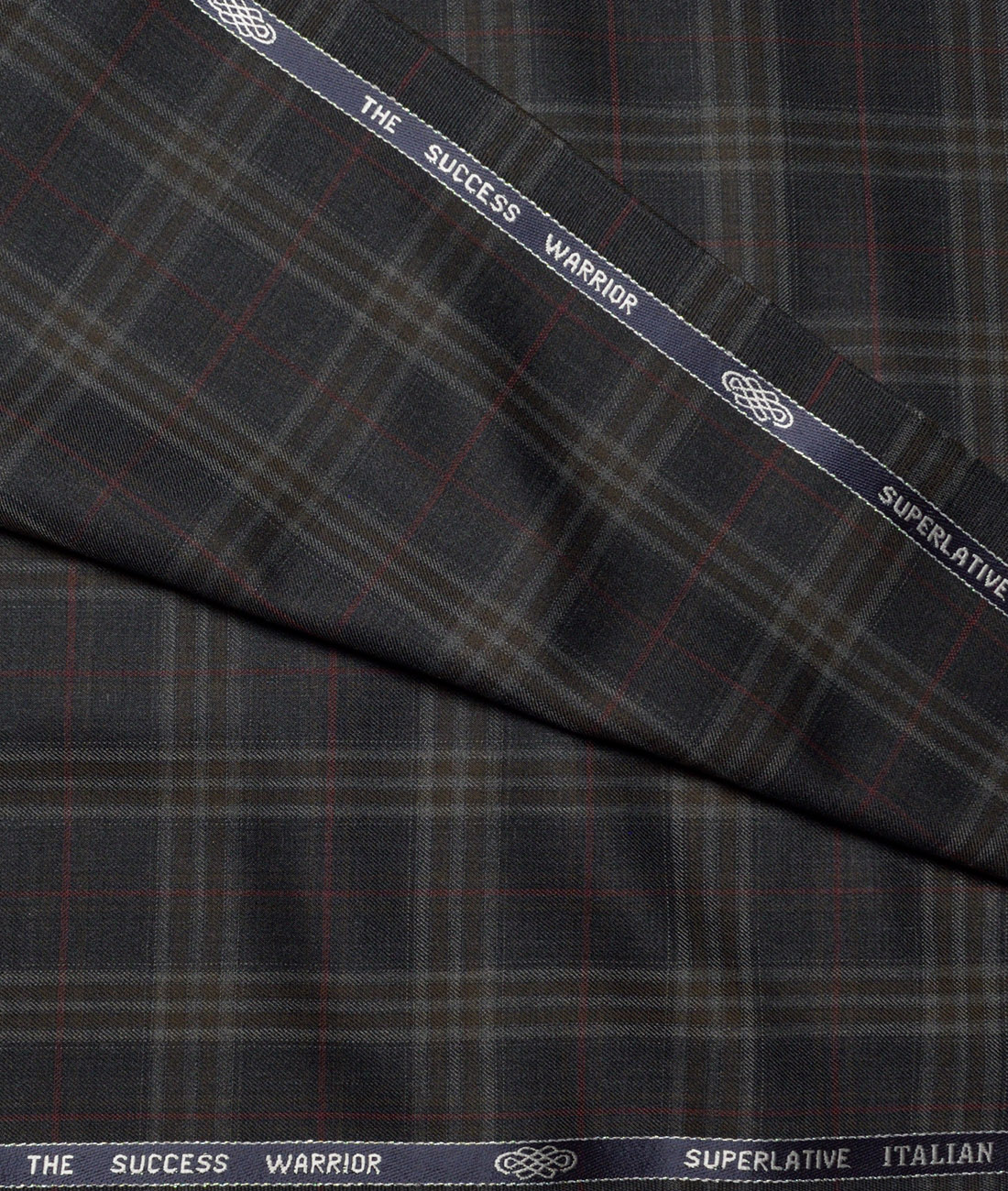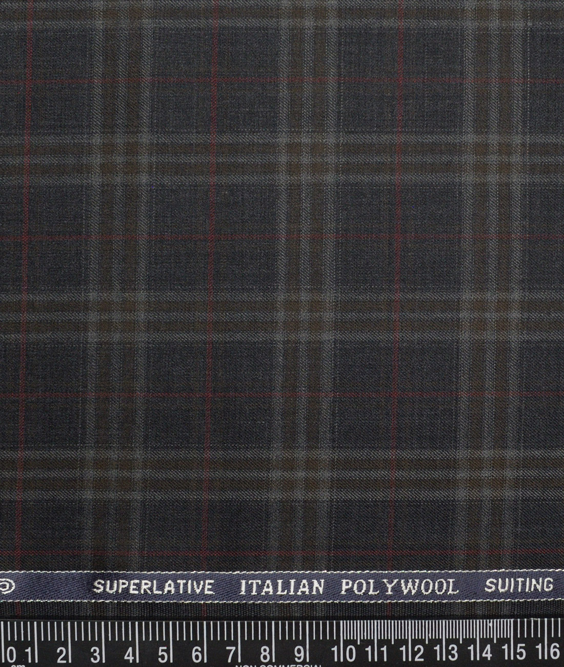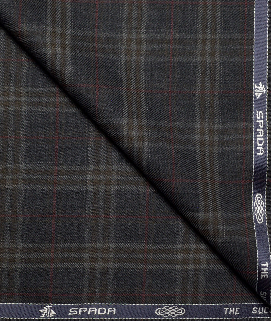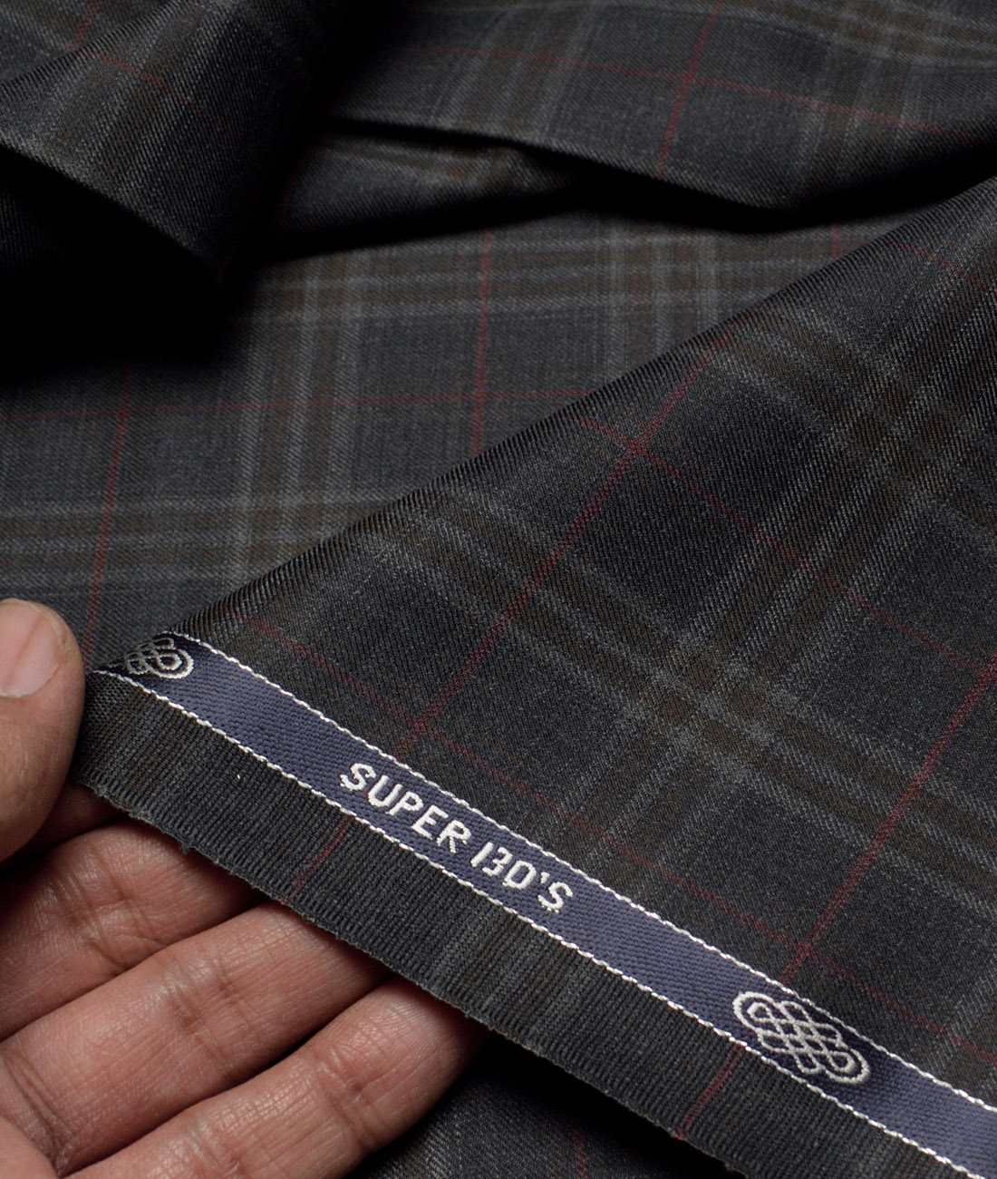 Spaadaa Super 130’s Checks 50% Merino Wool Suiting Fabric (Dark Grey)