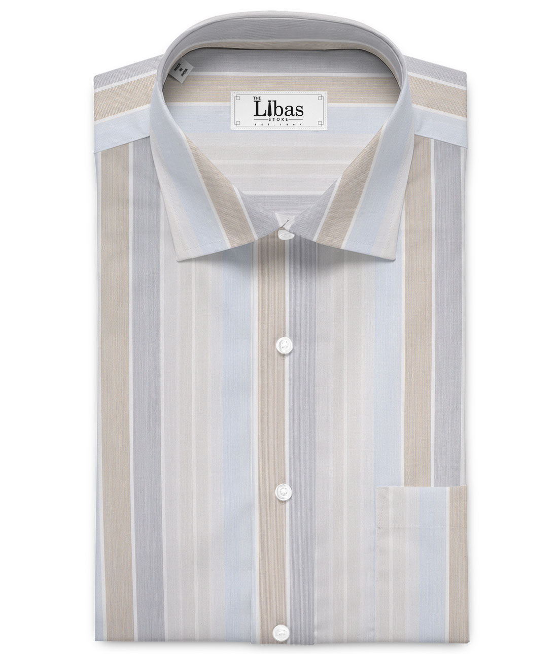 Color: White base with Grey, Brown & Sky Blue Stripes,