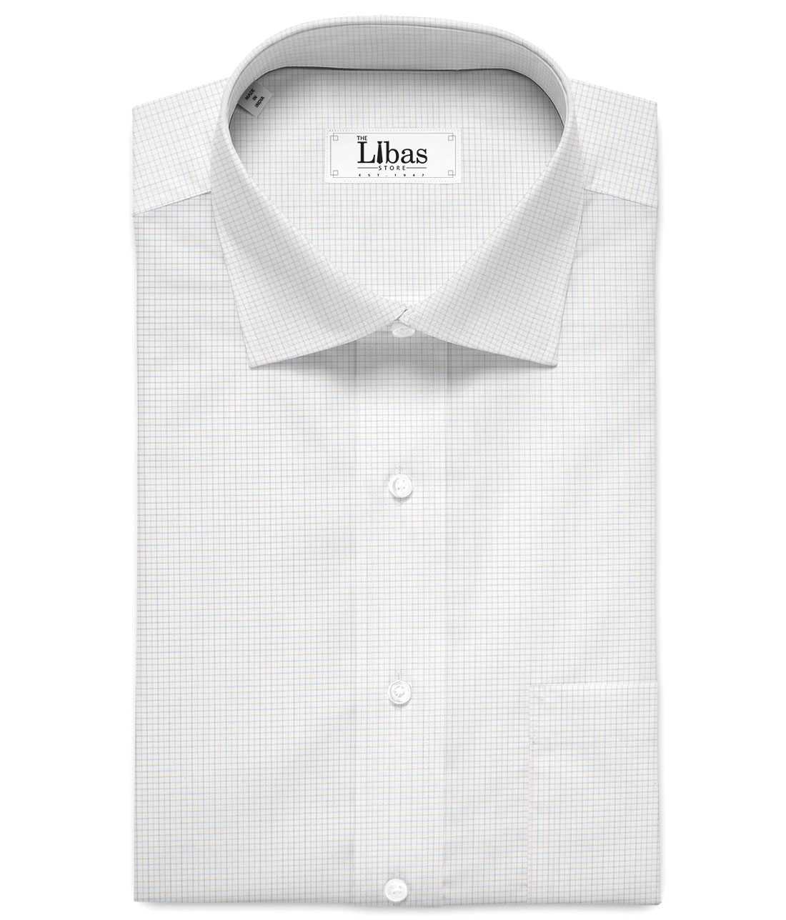 Color: White base with Blue & Brown Micro Checks,