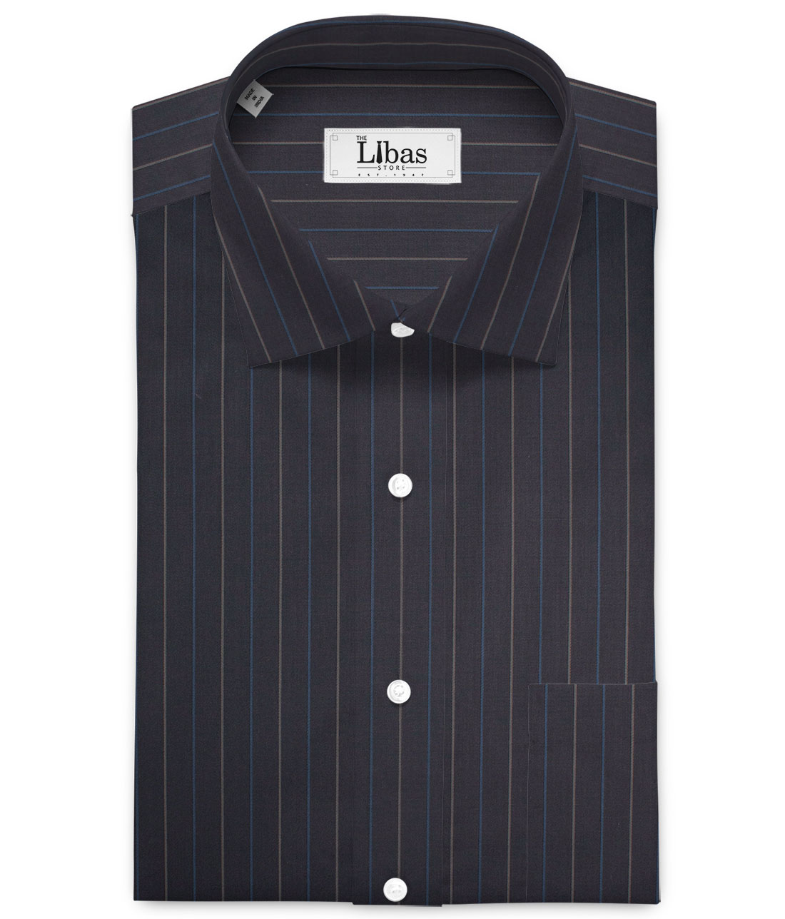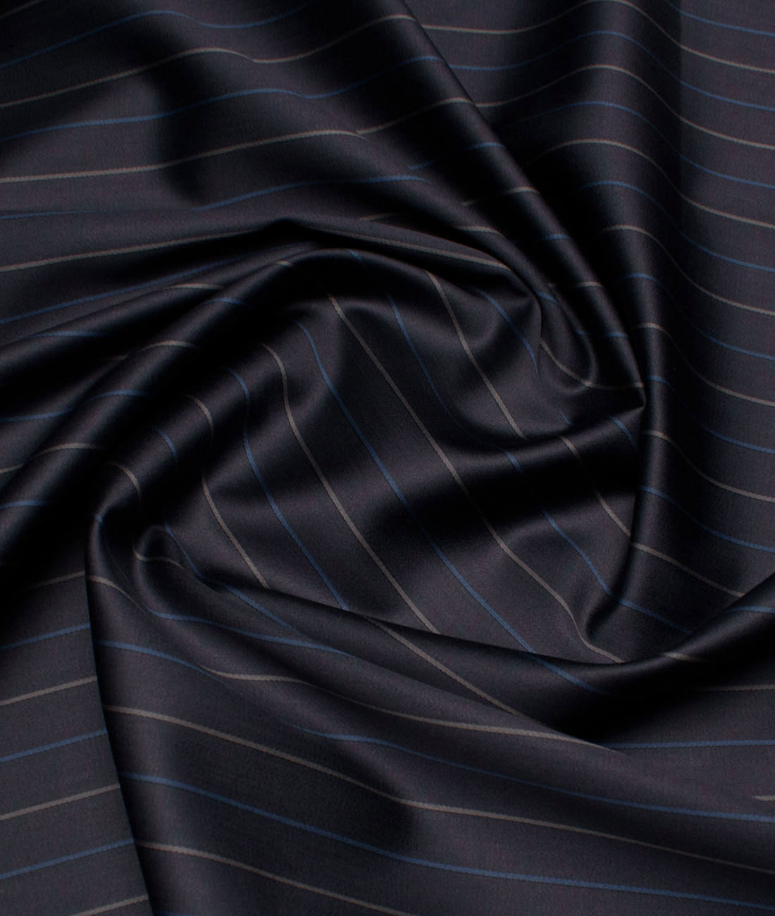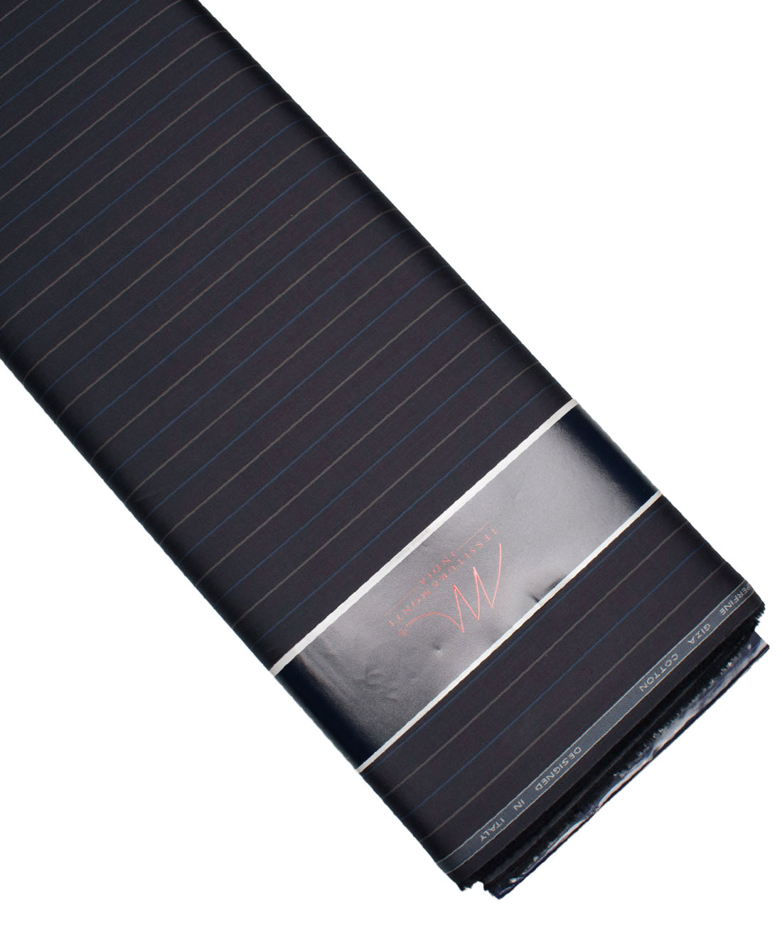 Tessitura Monti 2 Ply 70’s Giza Cotton Striped Shirting Fabric (Dark Navy Blue)