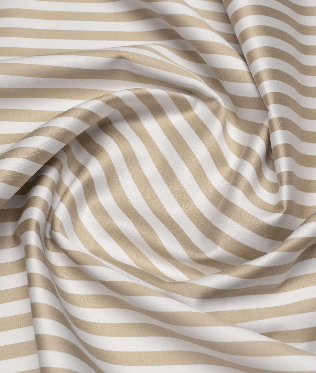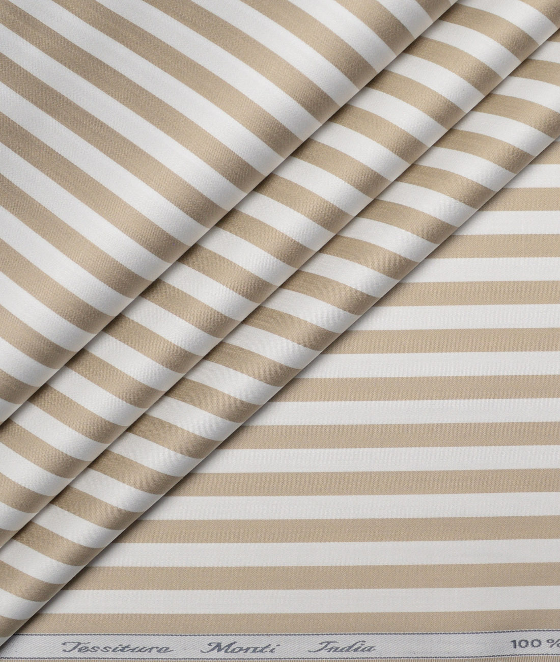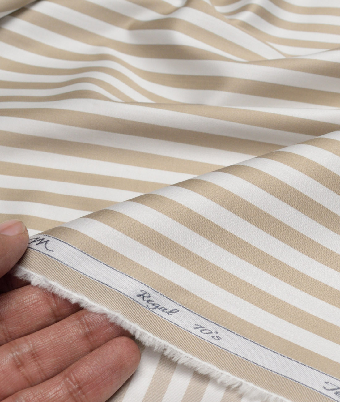 Tessitura Monti 2 Ply 70’s Giza Cotton Striped Shirting Fabric (White & Brown)