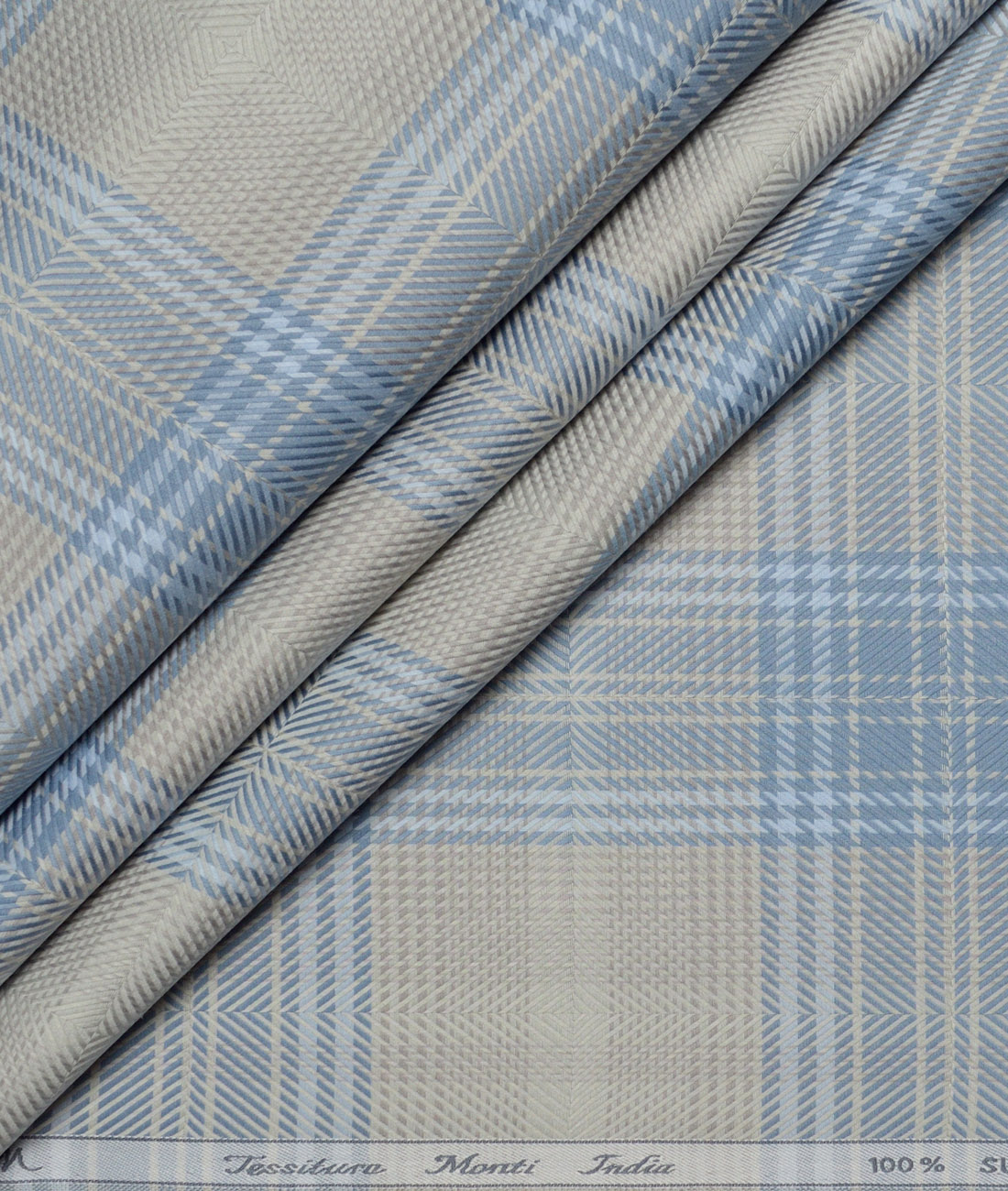 Tessitura Monti Giza Cotton Checks Shirting Fabric (Biege & Blue)