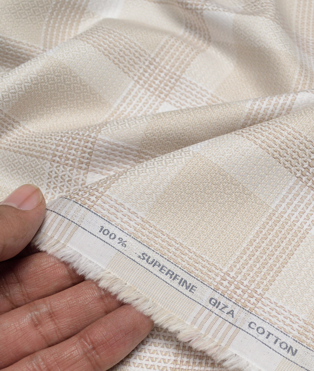 Tessitura Monti Giza Cotton Checks Shirting Fabric (White & Beige)