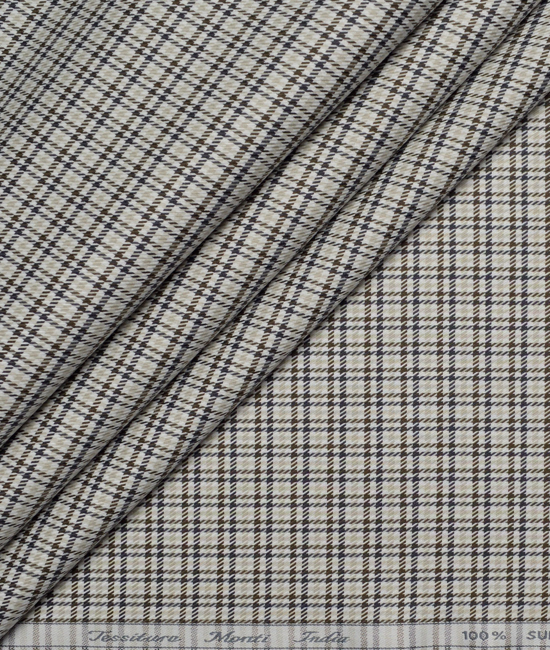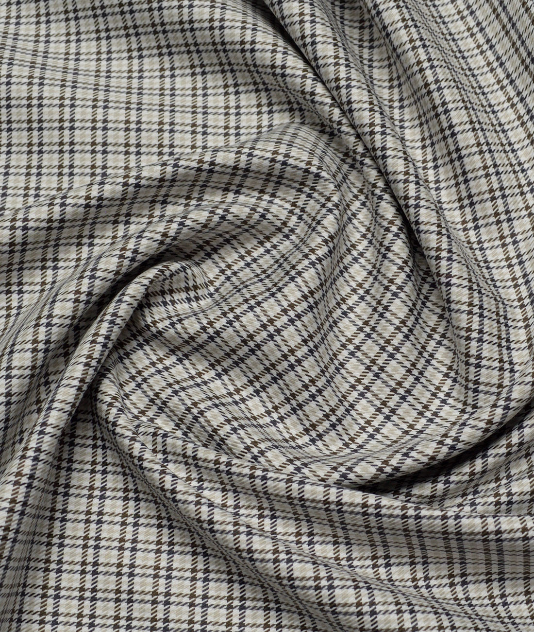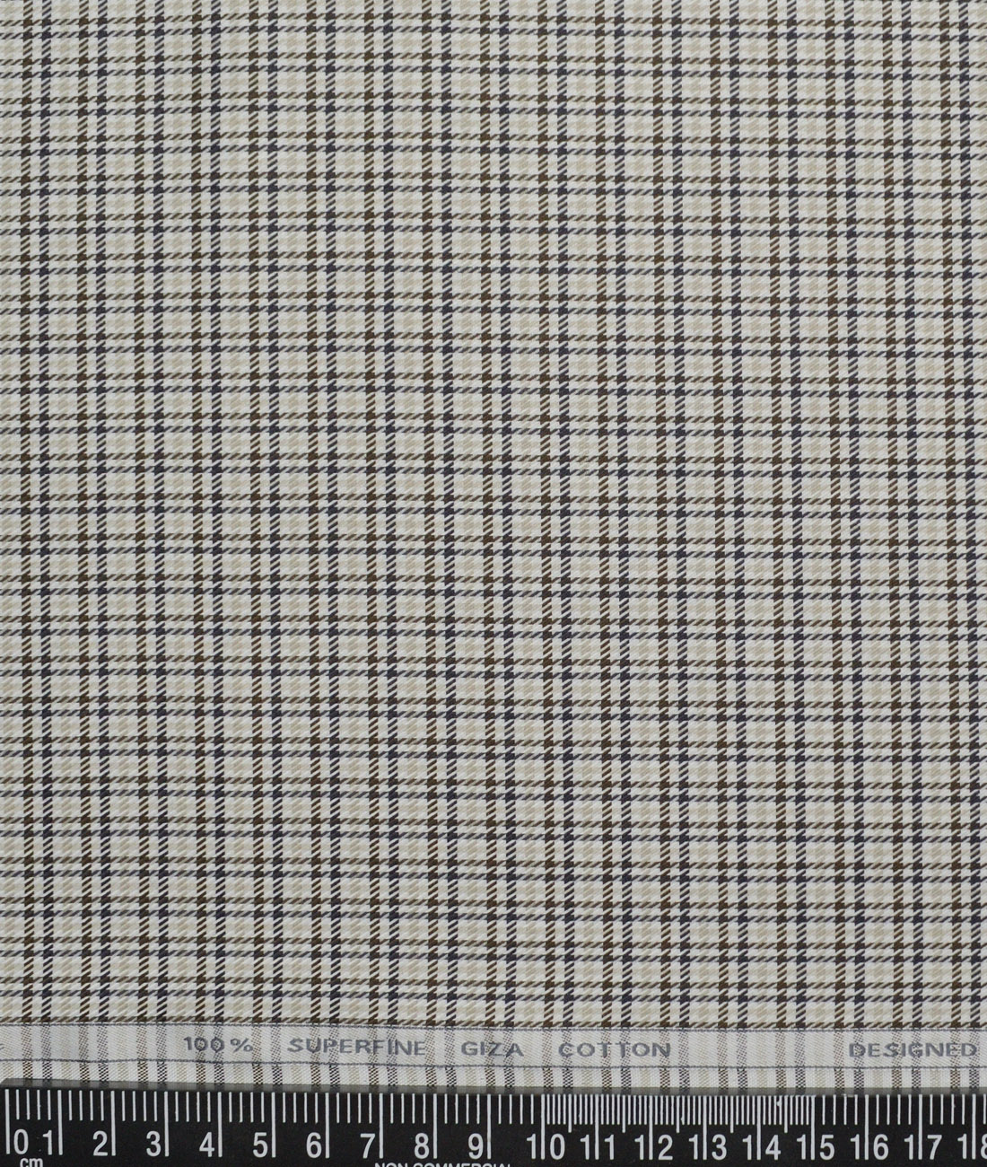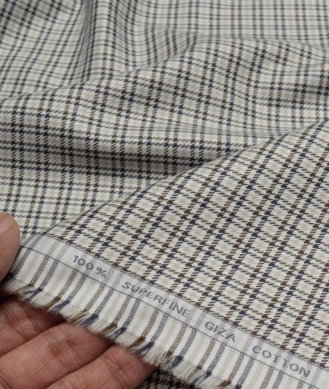 Tessitura Monti Giza Cotton Checks Shirting Fabric (White & Brown)